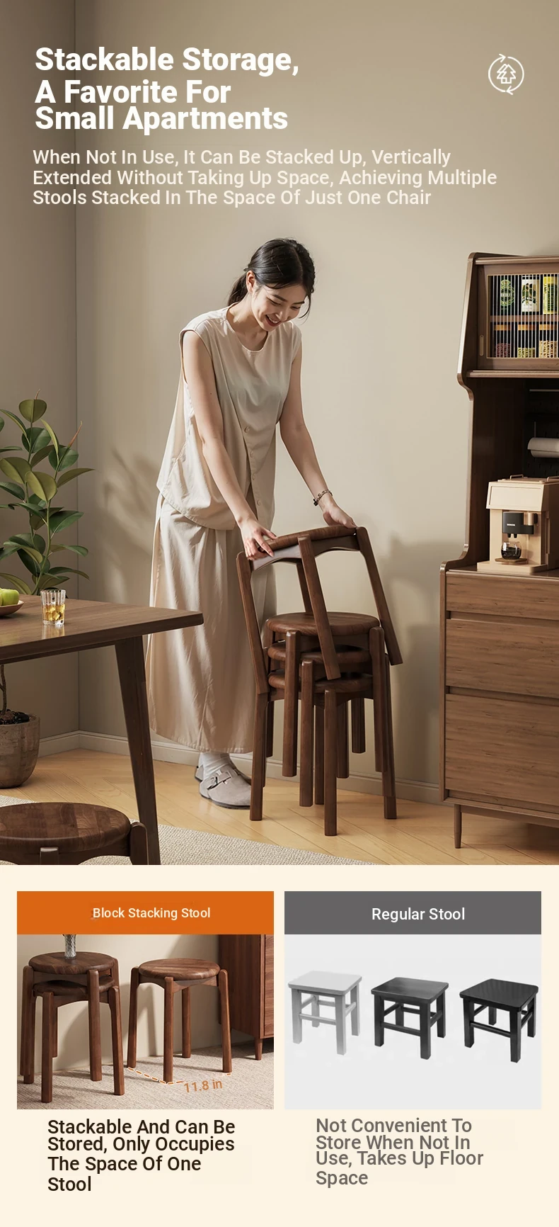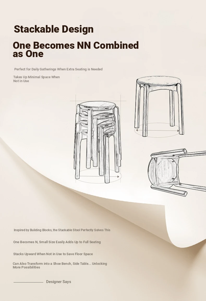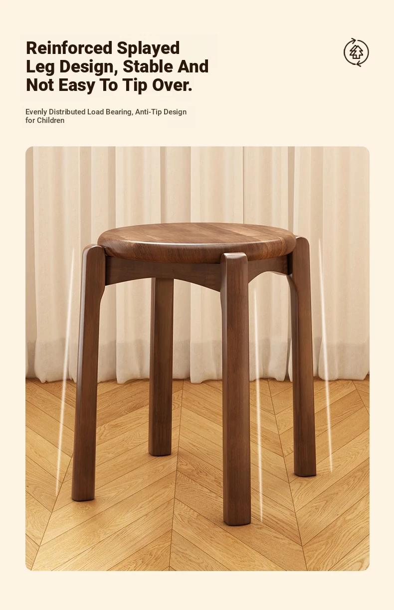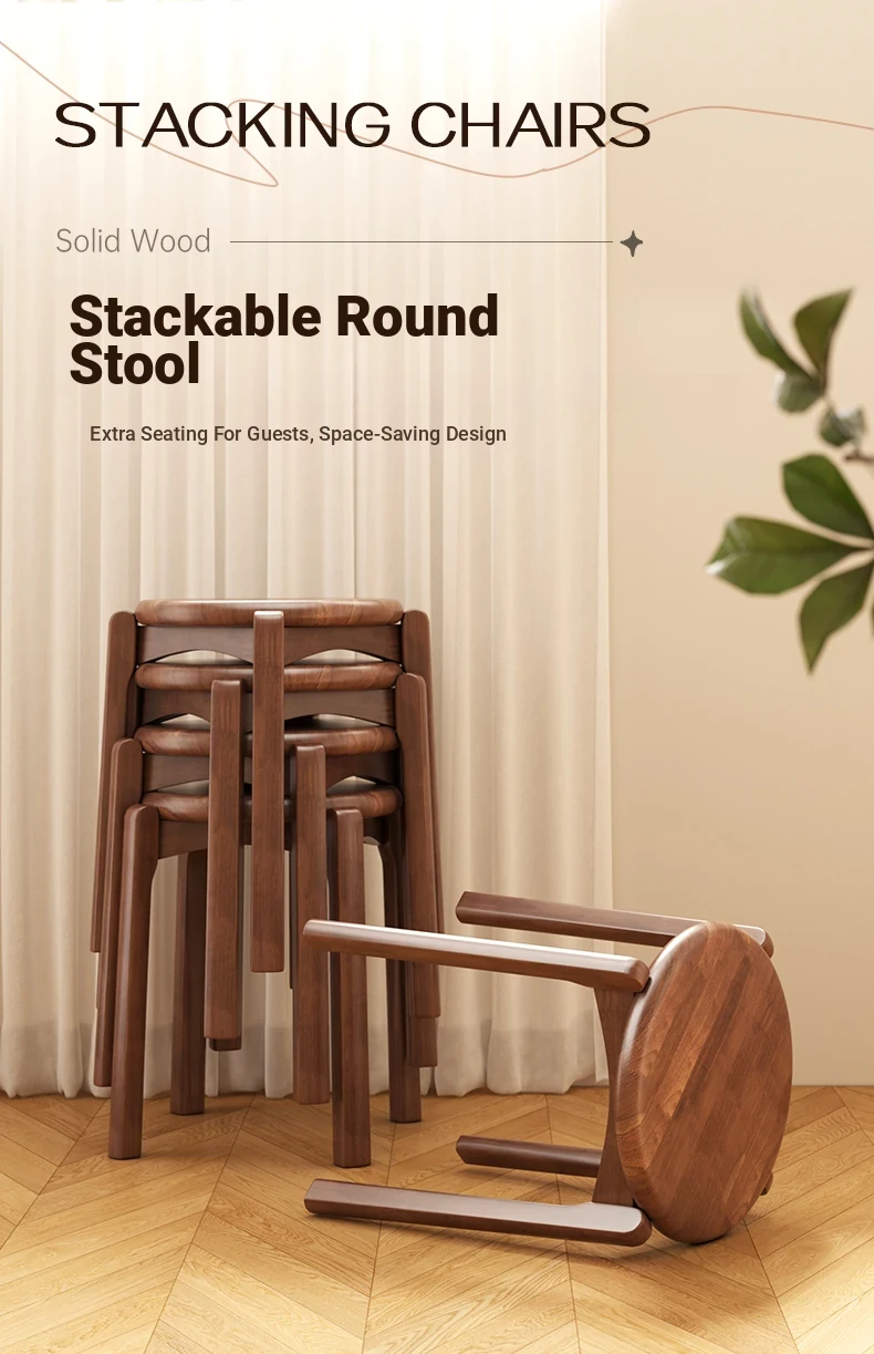Solid Wood Stackable Stool - Versatile Dining Chair for Home & Guests, Durable Thick Wooden Square Bench for Commercial Use, Perfect for Restaurants and Gatherings