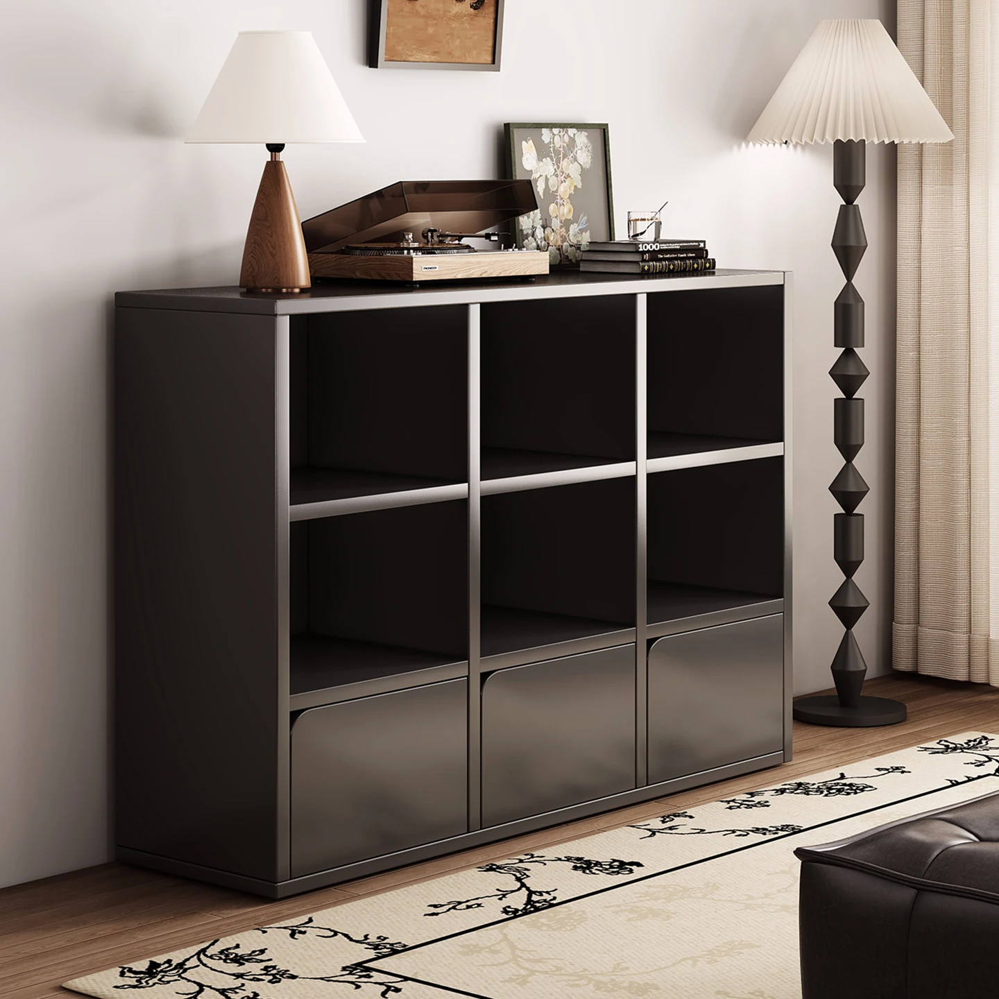2025 New Vintage Black Bookshelf - Elegant Grid Storage and Display Cabinet for Living Room, Stylish Organizer and Storage Solution