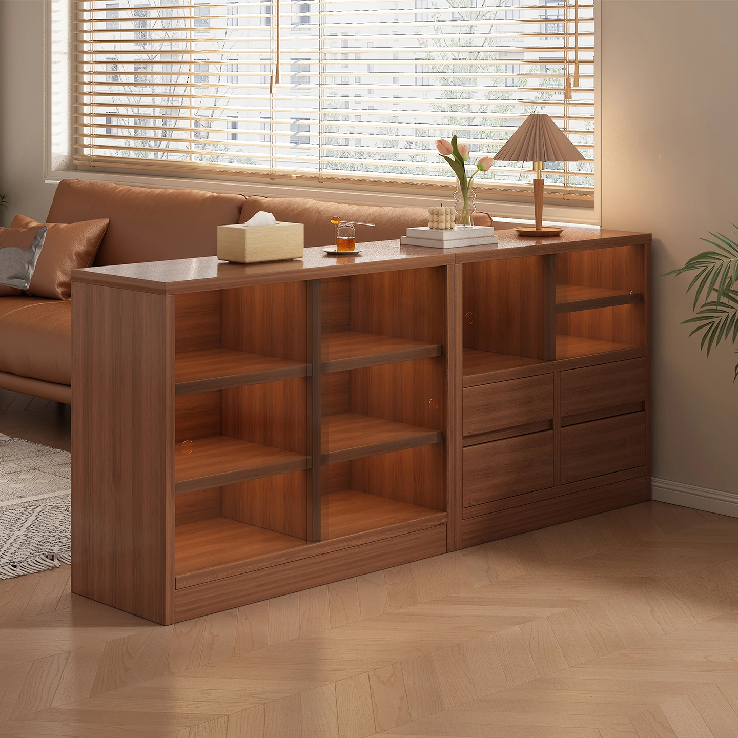 Solid Wood Color Chest of Drawers - Vintage Style Living Room Divider, Sofa Side Table, Low Storage Cabinet, Perfect for Organizing and Displaying Tea and Essentials