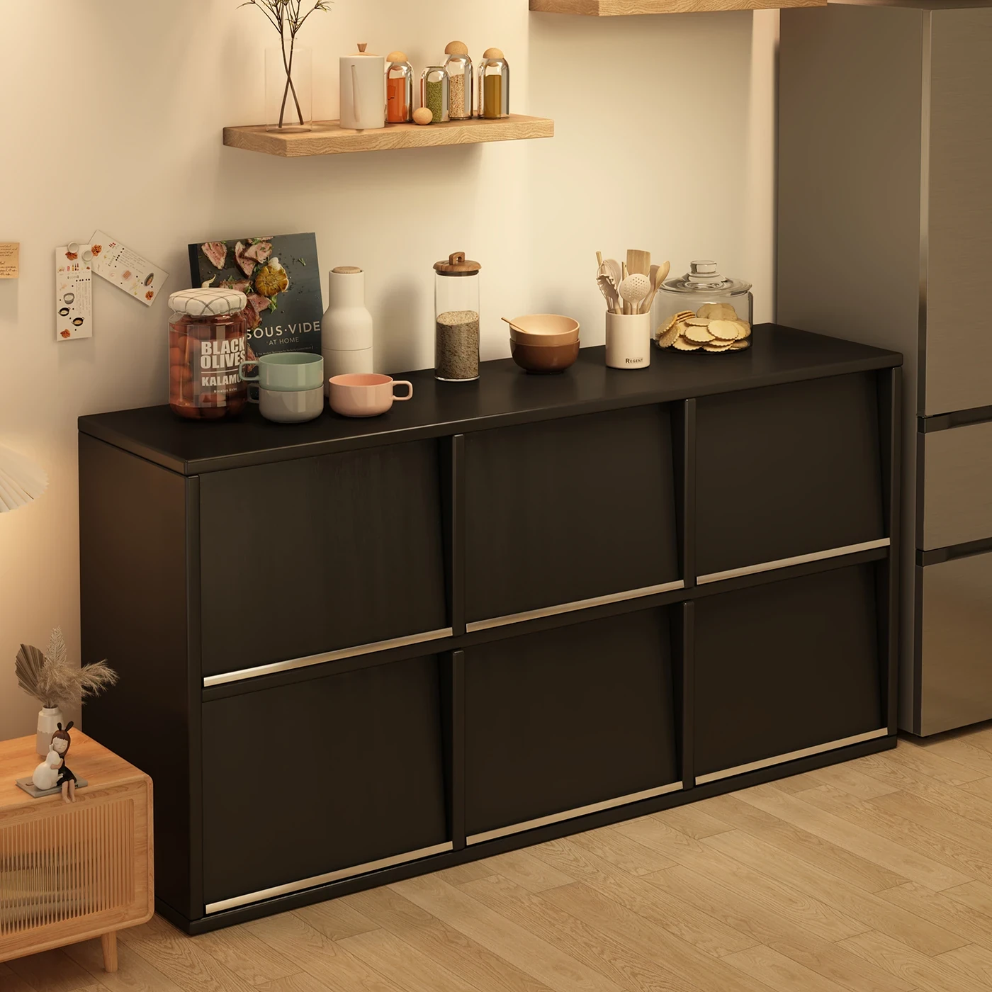 Elegant Tea Storage Cabinet - Home Dining Sideboard, Vintage Style Wall-Mounted Organizer for Living Room, Multi-functional Display Unit with Ample Storage Space