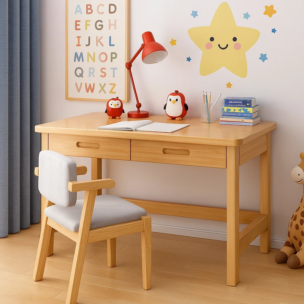 Solid Wood Writing Desk for Home and Bedroom - Simple Computer Table with Drawer, Ideal for Students and Homework, Natural Wood Finish