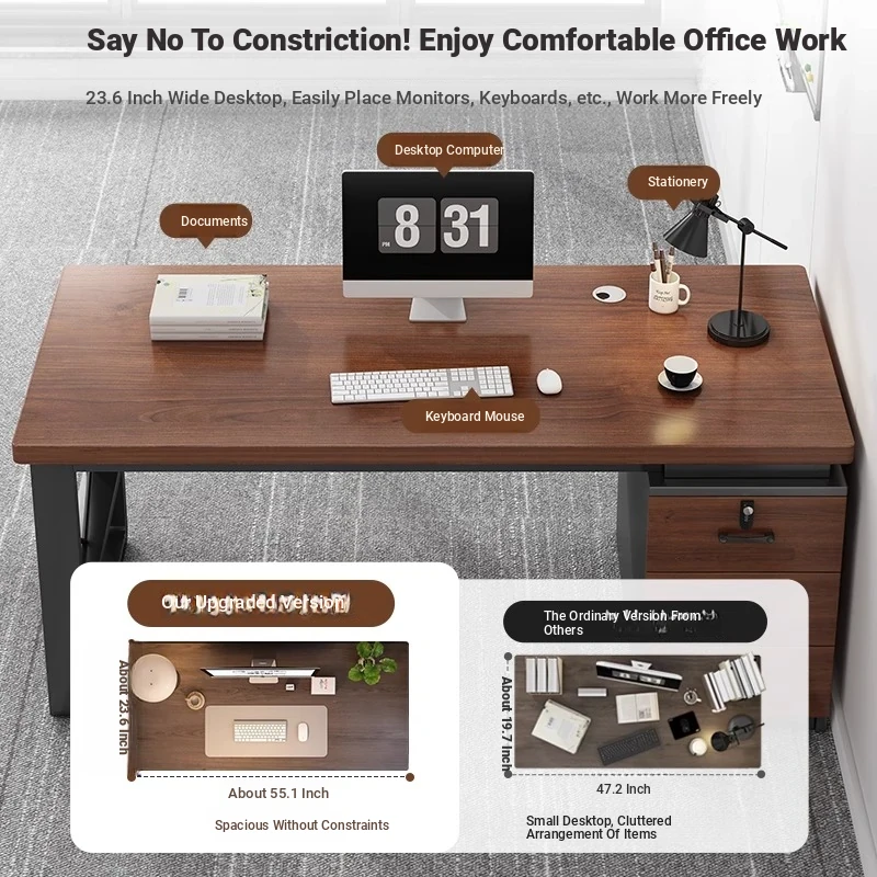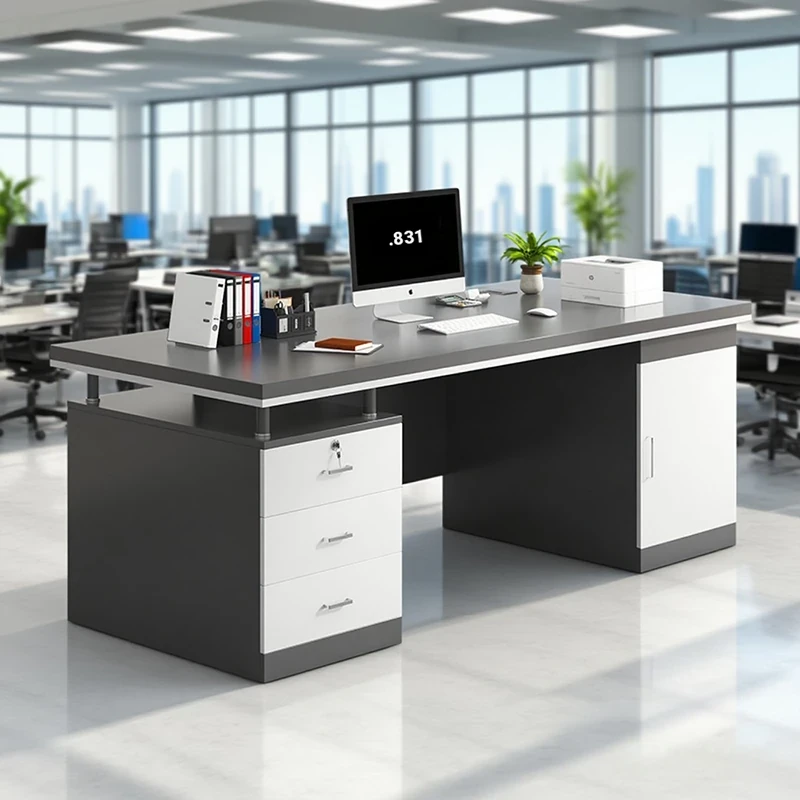 Minimalist Office Desk with Drawers - Compact Single-User Workstation Set for Employees, Ideal for Home or Office Use, Perfect for Computer and Study Needs.