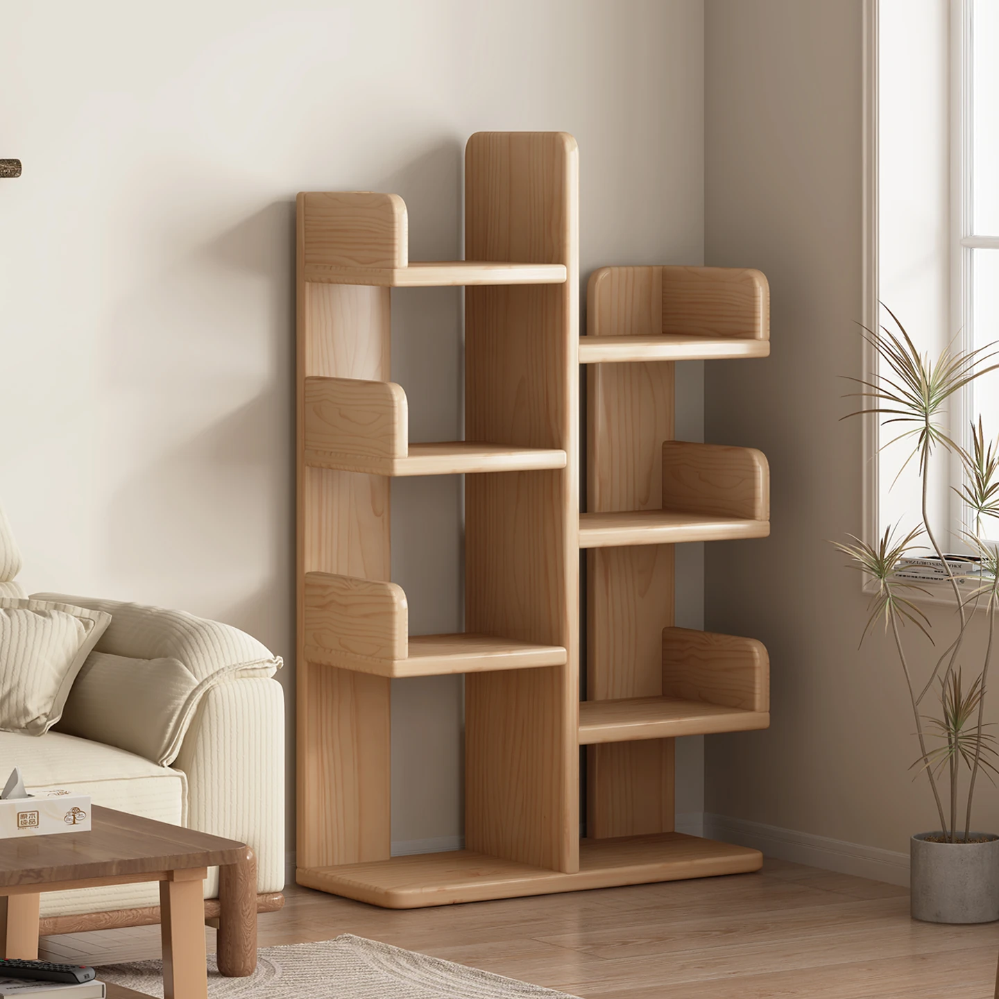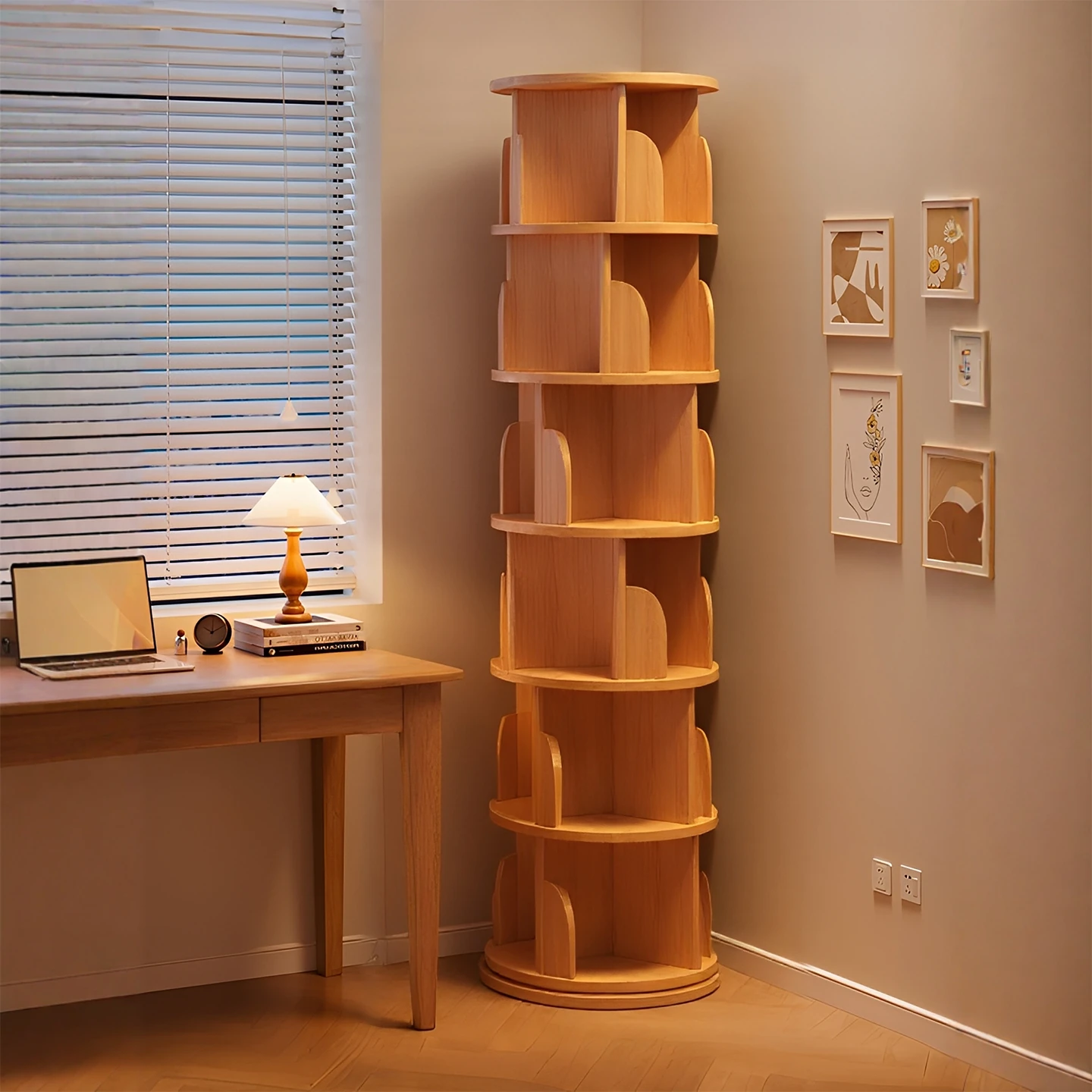 360° Rotating Solid Wood Bookshelf - Stylish Corner Storage Rack for Living Room, Home Display Cabinet, Round Design, Perfect for Students and Organizing Your Space!