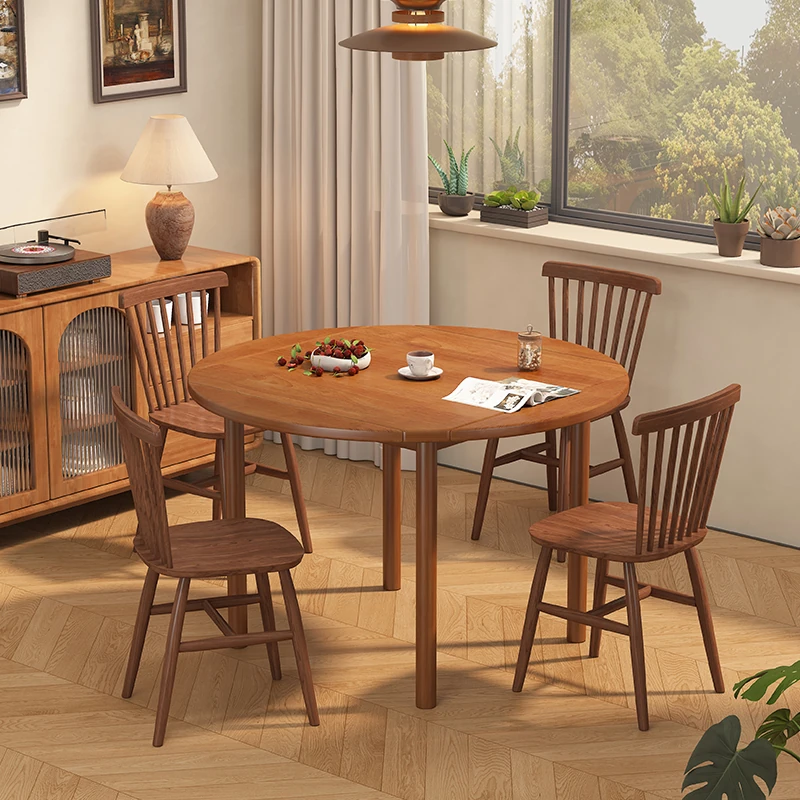 2025 New Folding Solid Wood Round Dining Table Set - Perfect for Small Spaces, Ideal for Home & Meetings