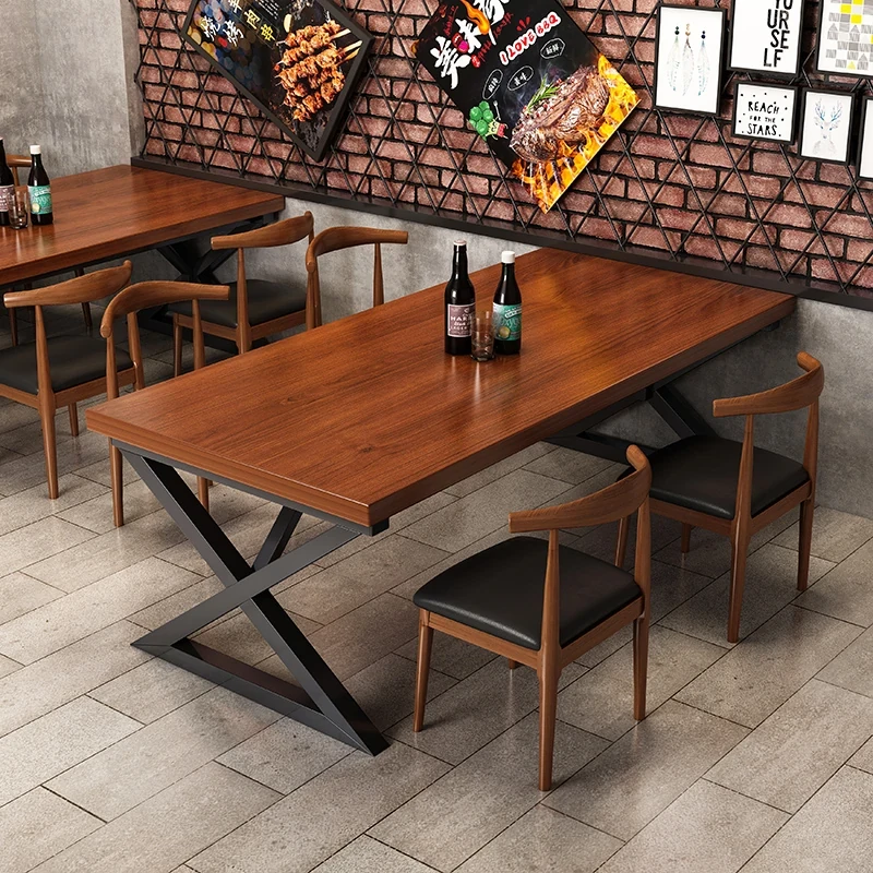 Industrial Style Restaurant Dining Table and Chair Set for Fast Food, BBQ, Cafes, and Canteens – Perfect for Commercial Use!