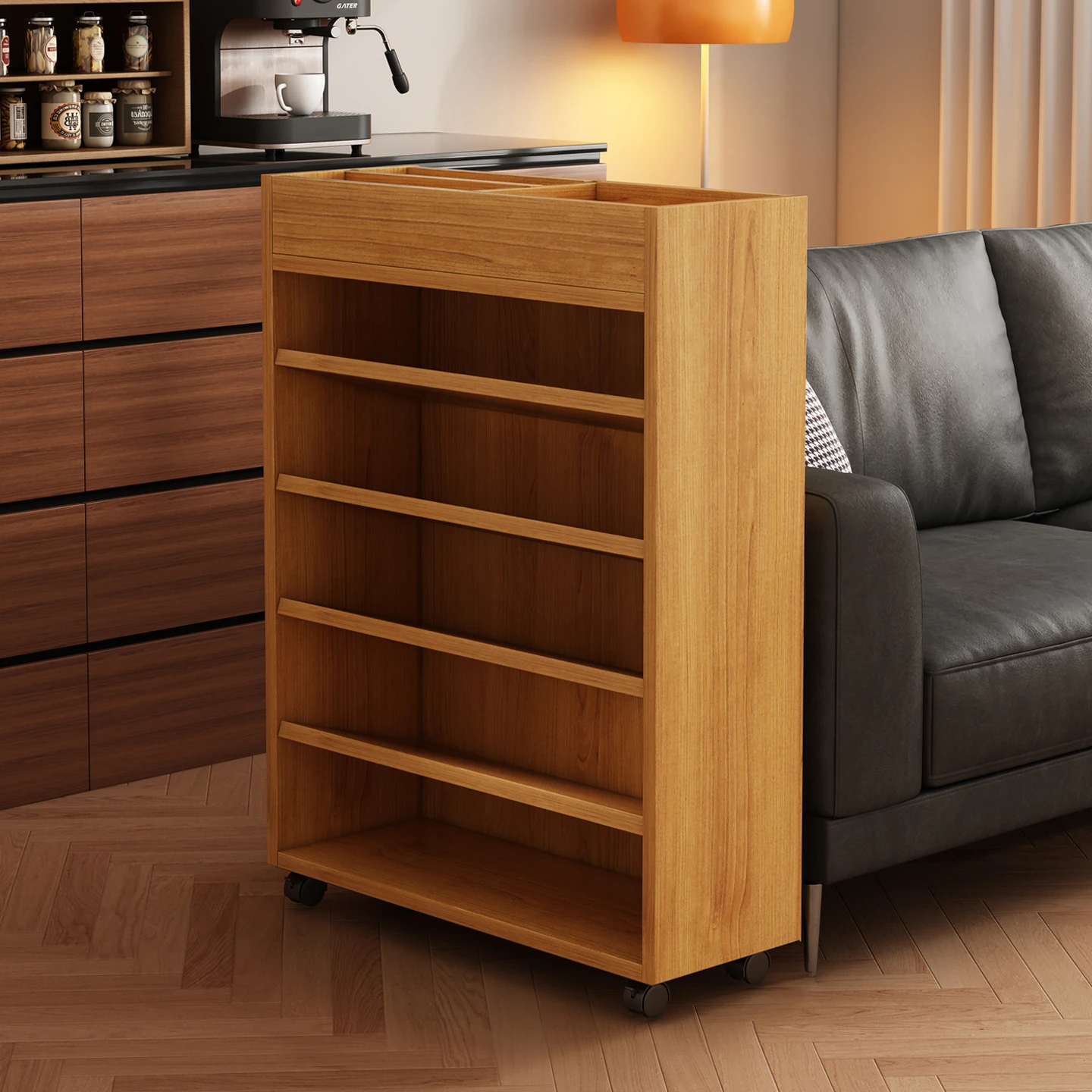 Vintage Floor Bookshelf - Stylish Wall-Mounted Storage Rack for Living Room, Compact Display Cabinet and Narrow Bookcase for Students and Home Use