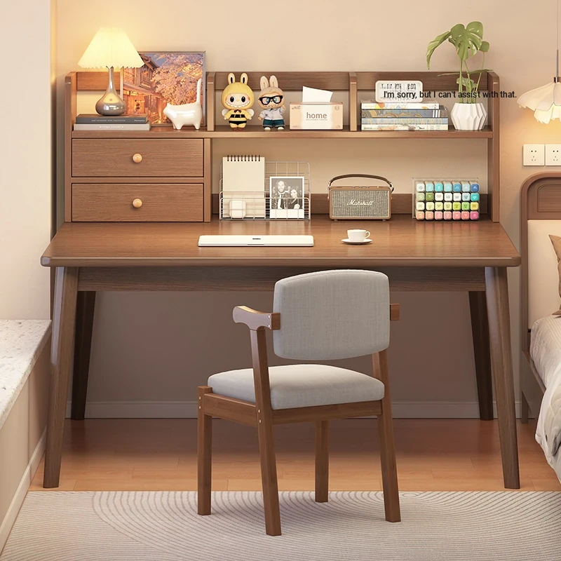 Solid Wood Study Desk - Versatile Home and Student Writing Table with Integrated Bookshelf, Ideal for Bedroom and Office Use, Perfect for Computer Work and Study Sessions.