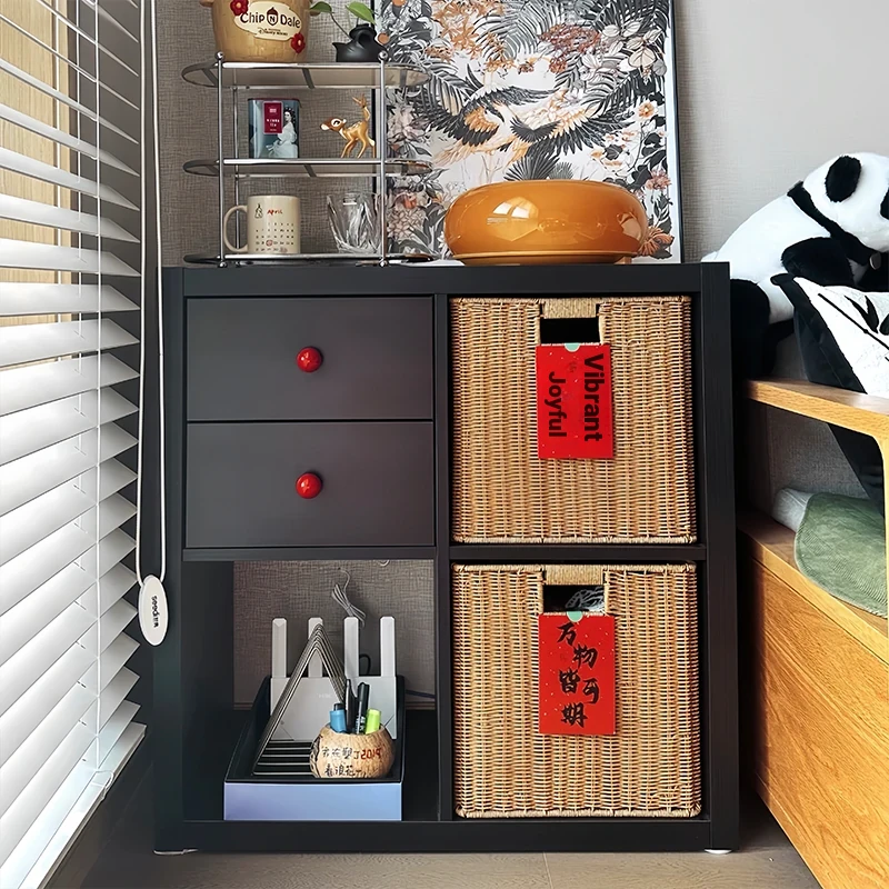Vintage Black Cube Bookshelf - Floor-standing Storage Rack for Living Room & Bedroom, 8-Cube Organizer for Stylish Home Décor and Efficient Storage Solutions.