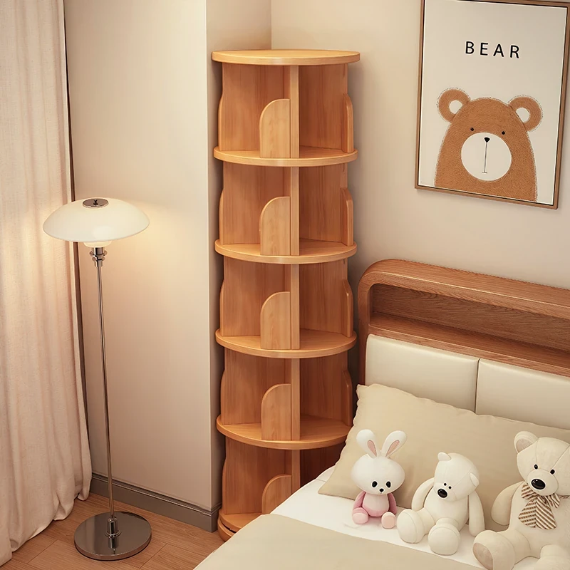 360-Degree Rotating Solid Wood Bookshelf - Space-Saving Nightstand and Corner Storage Rack for Bedroom, Perfect for Students and Home Decor