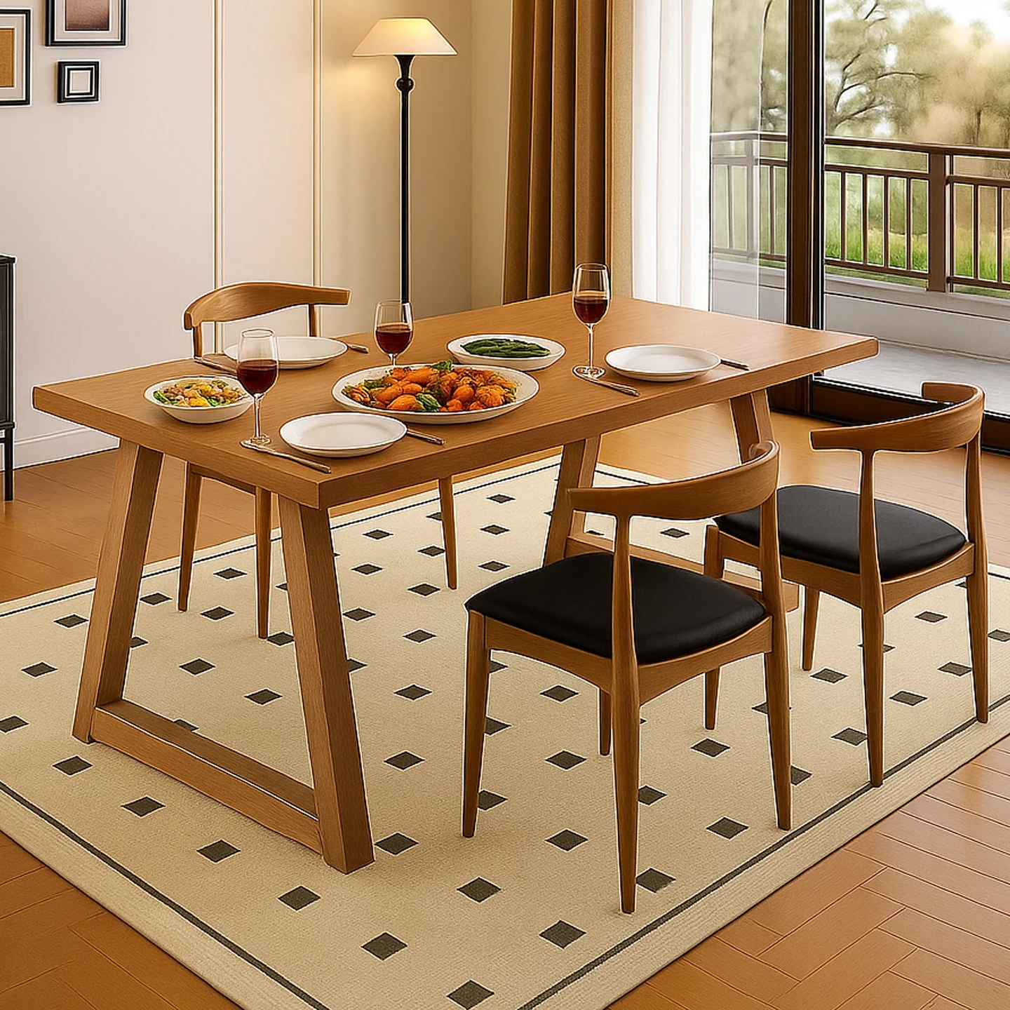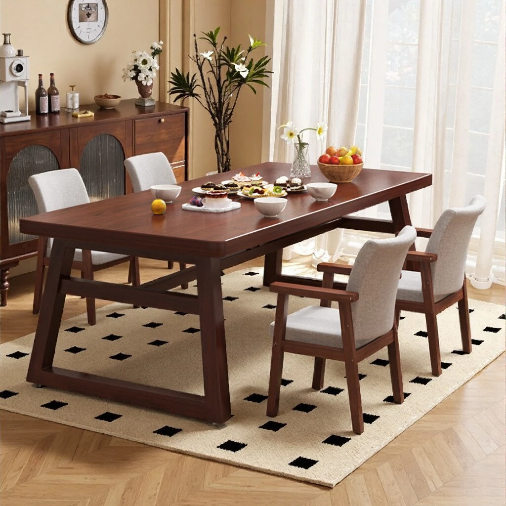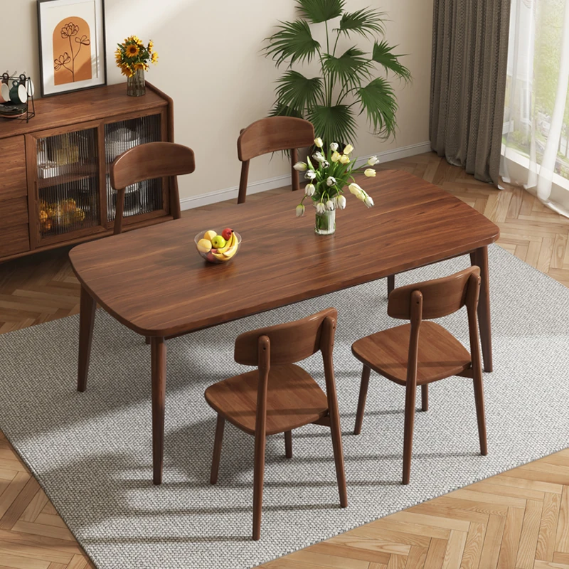 Walnut Solid Wood Dining Table Set for Small Spaces - Rectangular Natural Wood Table with Matching Chairs, Perfect for Cozy Family Meals