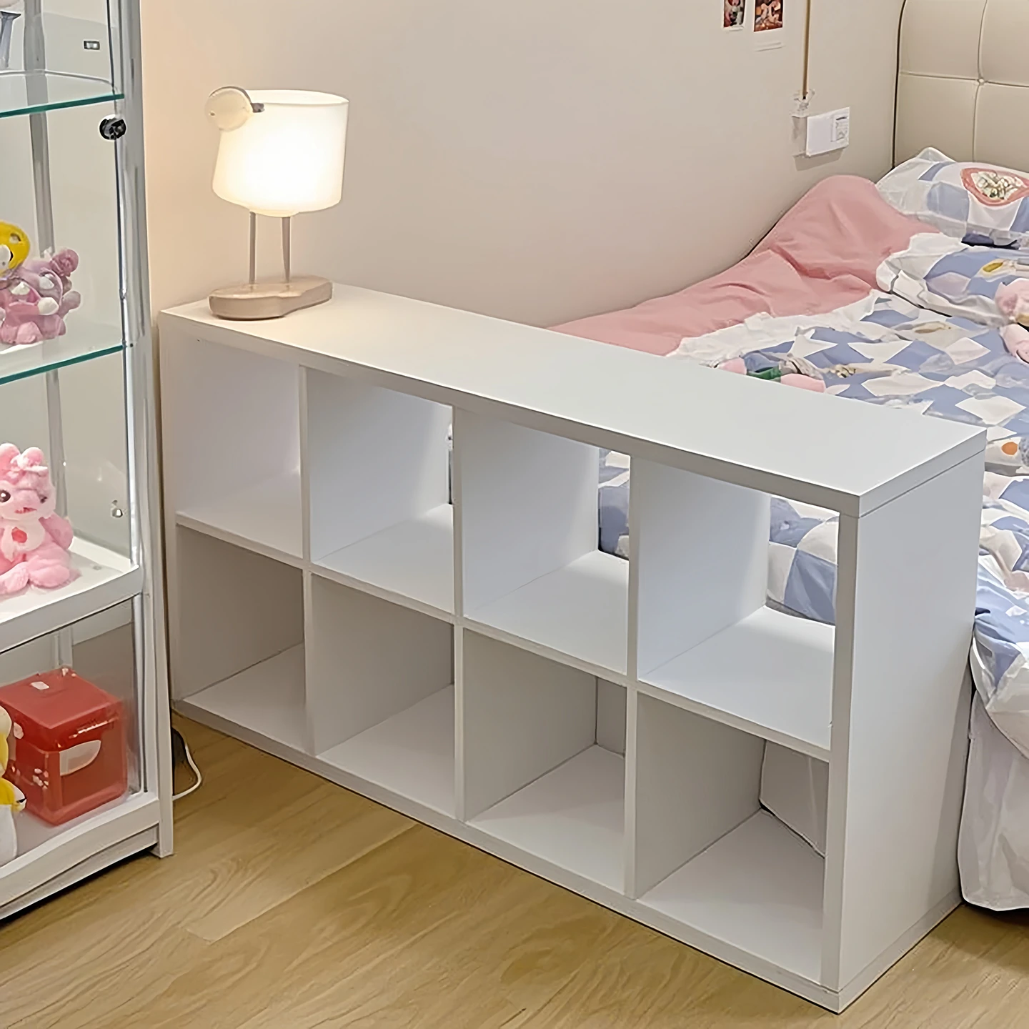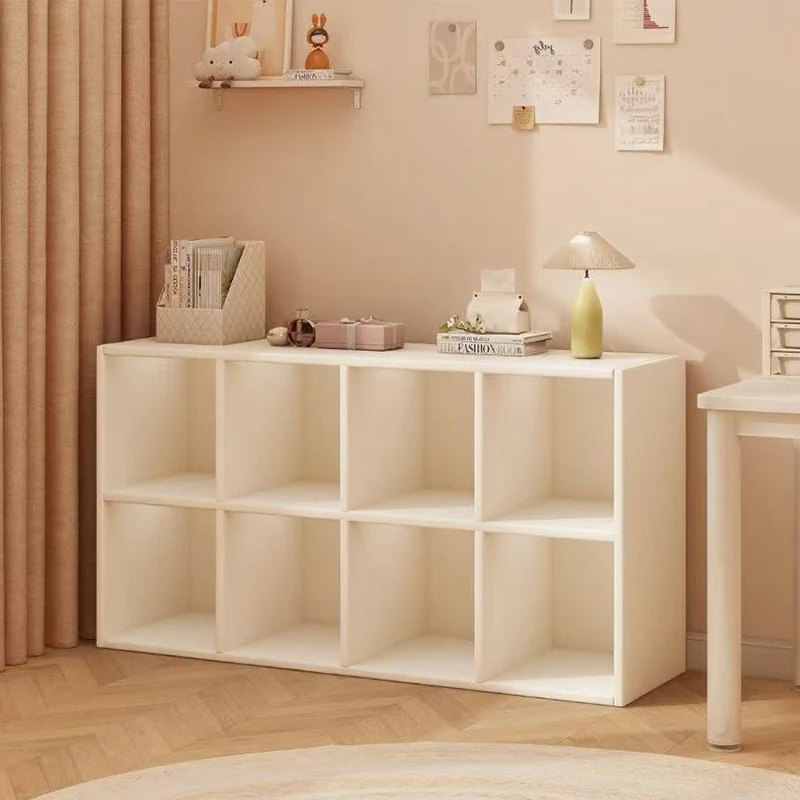 Cream-Colored Bedroom Half-Enclosed Bookcase, Kaleck Grid Storage Combination Cabinet, Stylish Nightstand and Bookshelf for Chic Home Decor