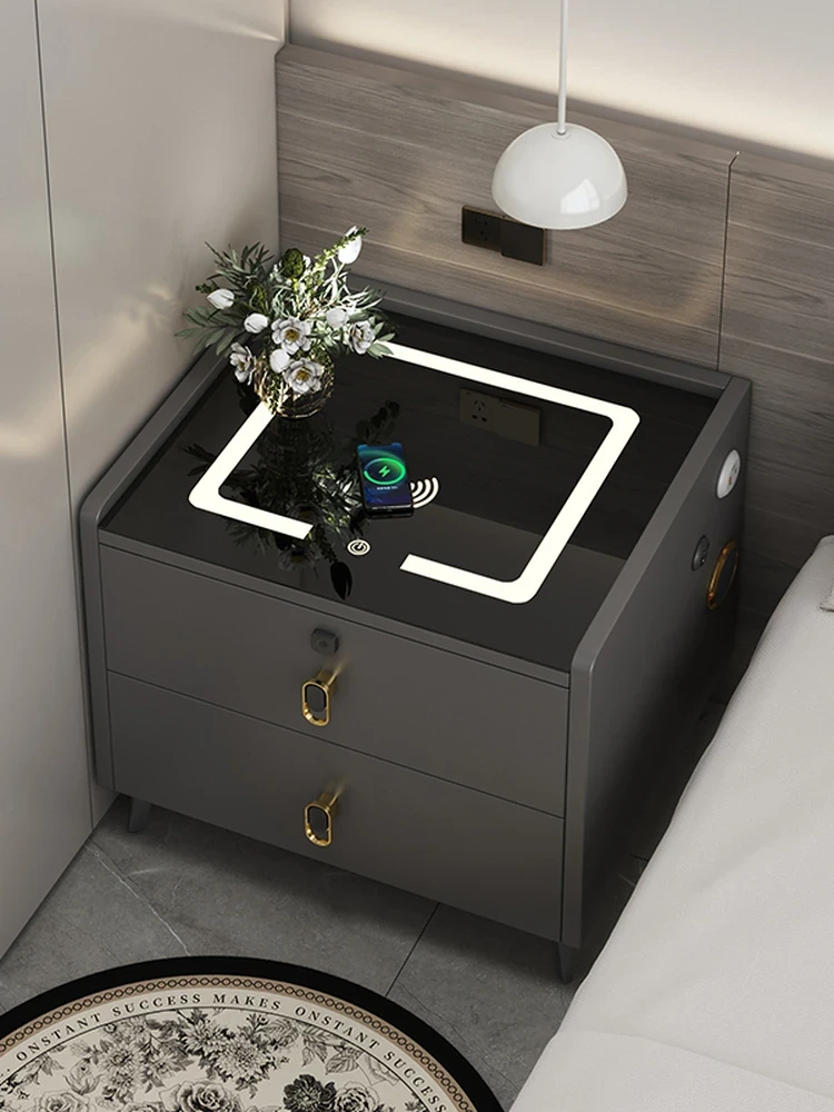 Smart Nightstand with Password Lock - Compact and Stylish for Home Bedrooms, Perfect for Small Spaces with Built-in LED Light, Luxury Feel for Modern Living