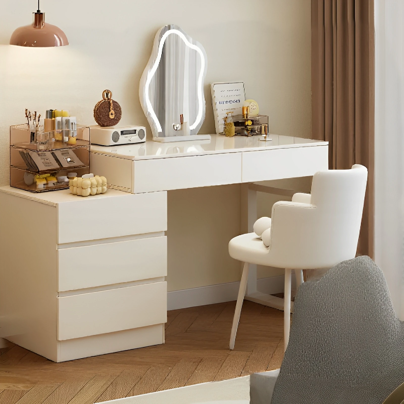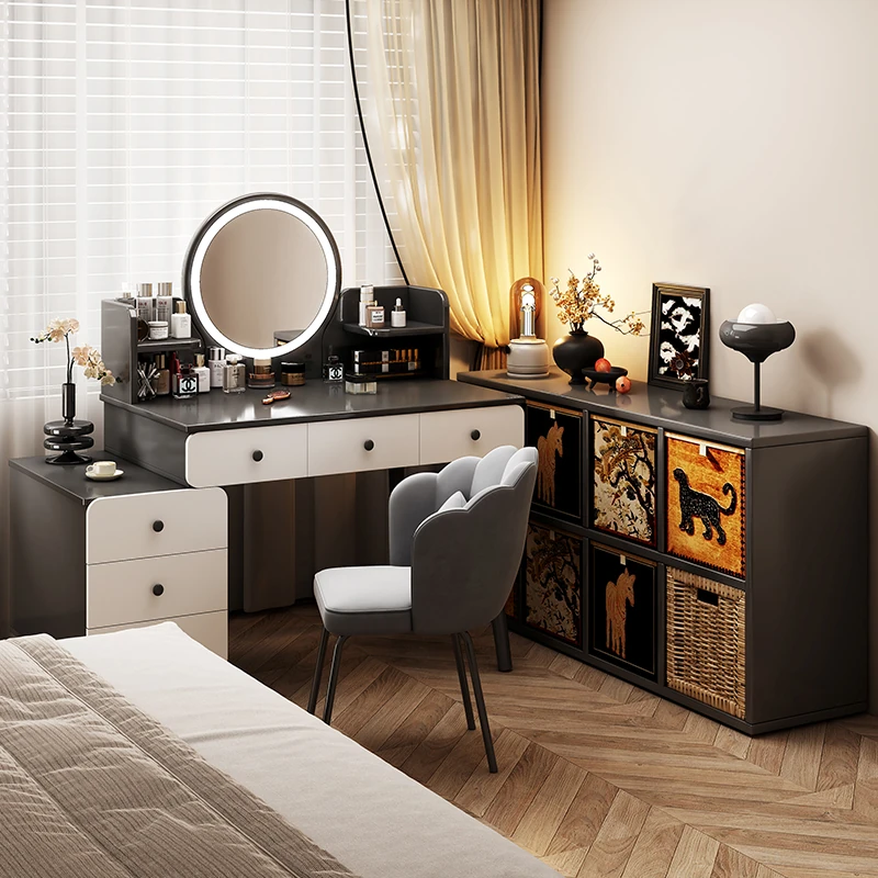 2025 New Corner Vanity Table with Integrated Storage Cabinet - Modern Minimalist Luxury Makeup Desk with Mirror for Master Bedroom