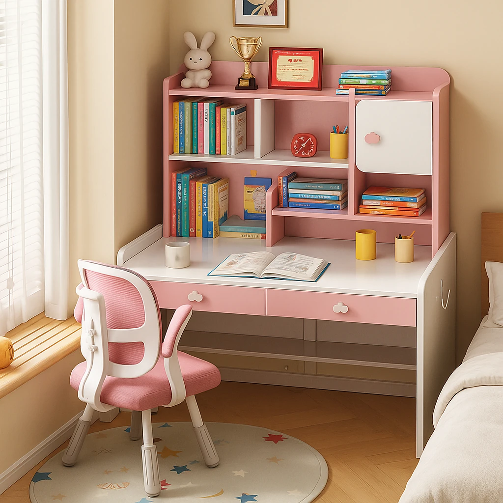 Adjustable Study Desk with Bookshelf - Perfect for Elementary and Middle School Students, Home Use, Ideal for Learning and Writing, Can Be Used as a Computer Desk in the Bedroom