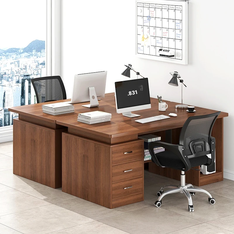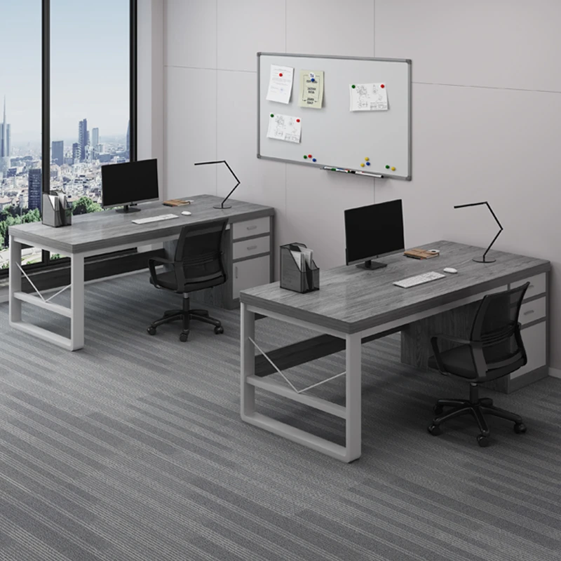 Modern Minimalist Office Desk and Chair Set for Employees - Sleek Desktop with Drawers, Perfect for Home and Office Use