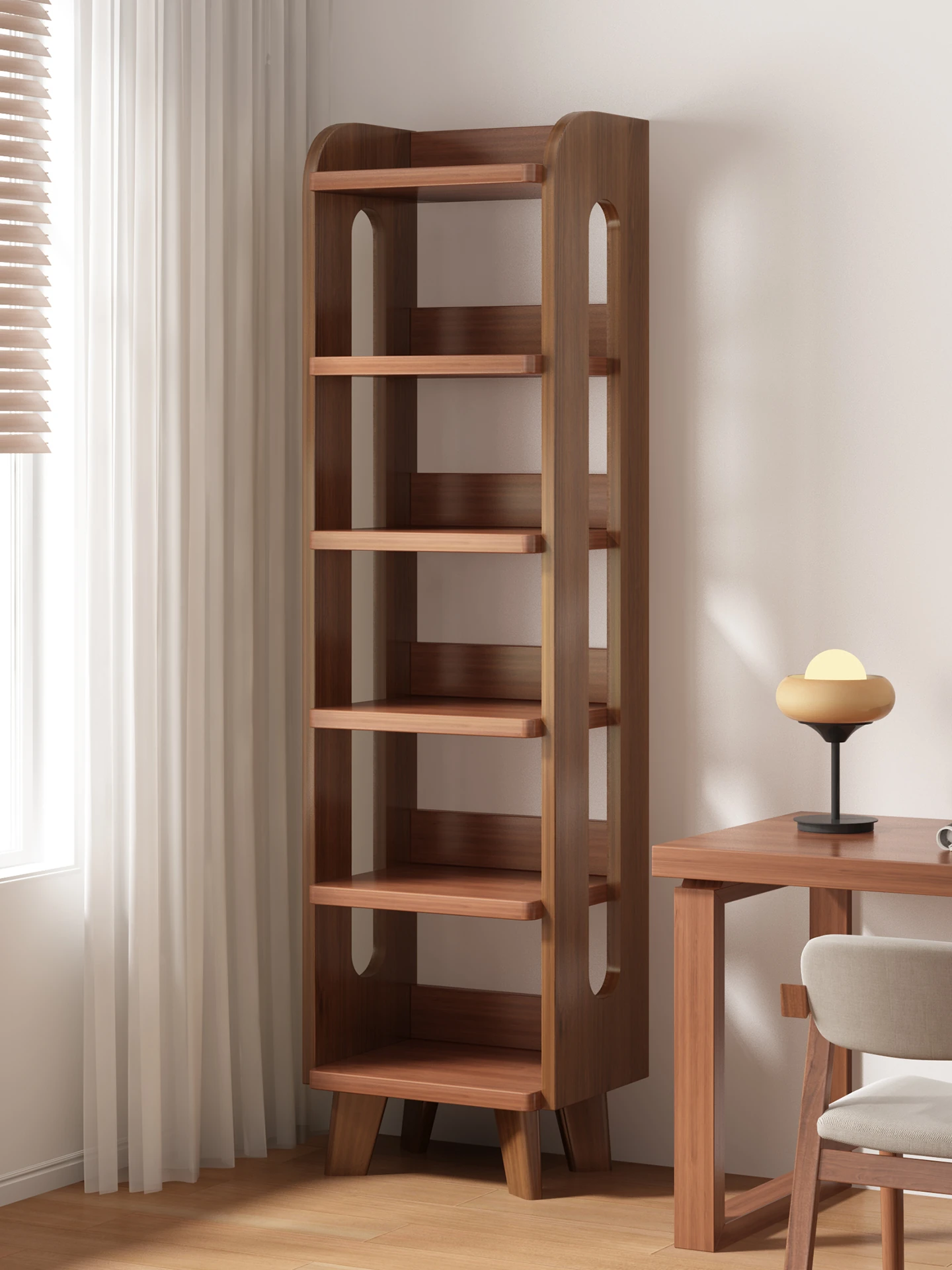 Space-Saving Solid Wood Bookshelf - Stylish Floor-Standing Storage Cabinet with Wall-Mount Design, Perfect for Narrow Spaces, Ideal Display Unit for Books and Decor