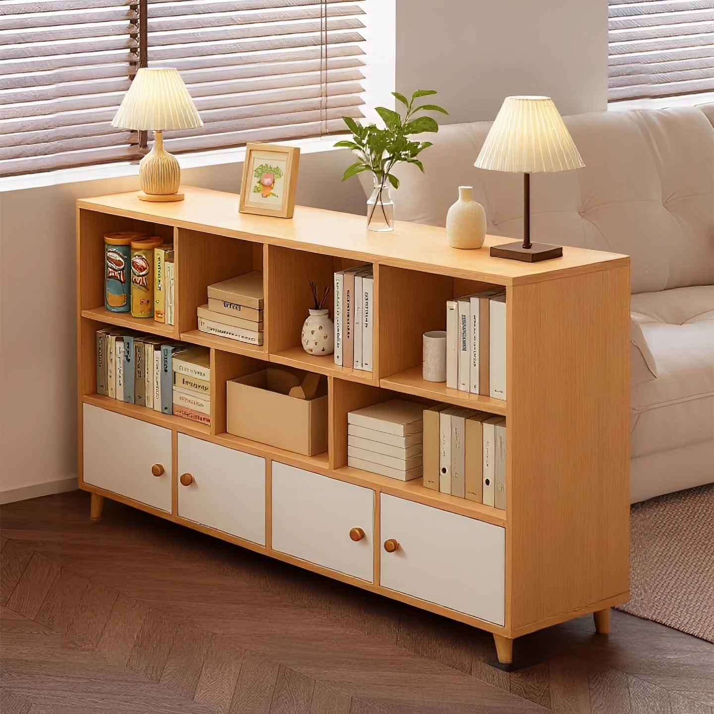 Stylish Minimalist Floor Bookcase - Versatile Storage Cabinet for Students & Home, Perfect as a Wall-Mounted Sofa Side Table, Ideal for Living Room Organization, Compact and Functional Design