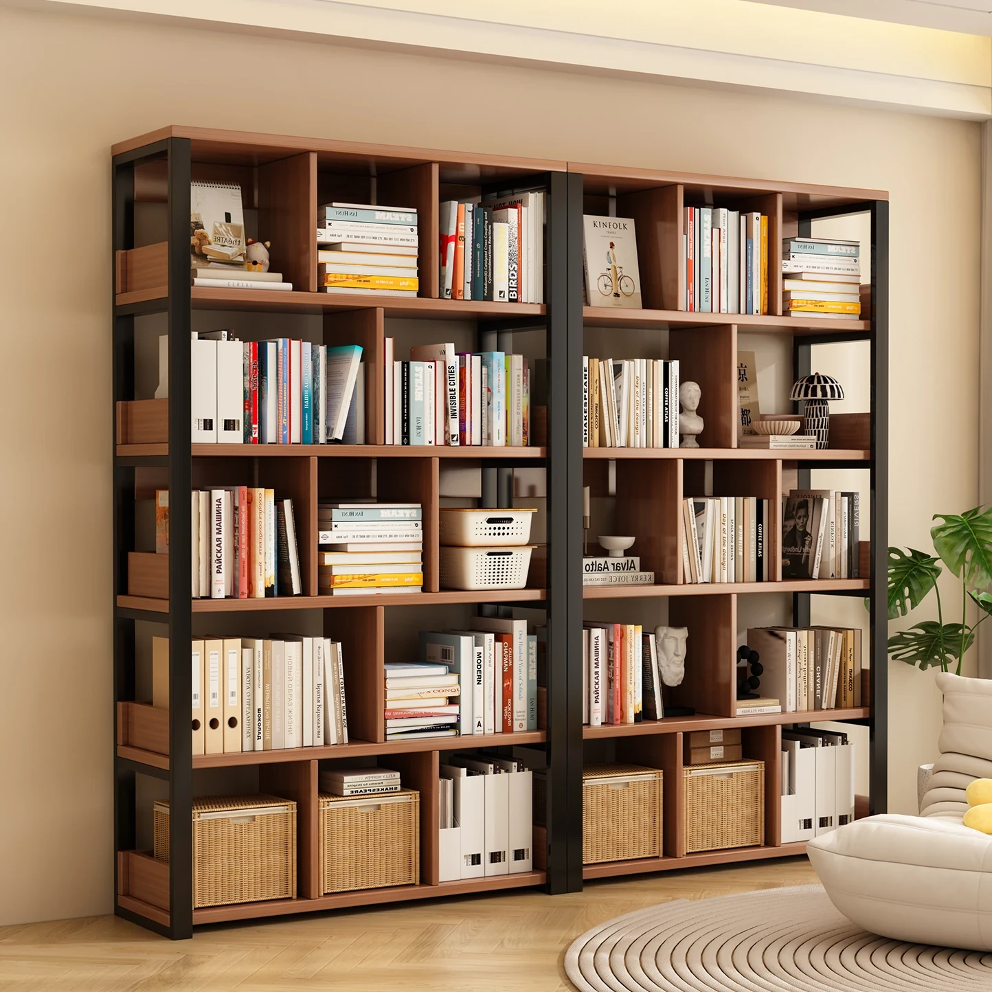 Steel Bookshelf - Stylish Floor Storage Rack for Students and Home Use, Wall-Mounted Storage Cabinet, Multi-Tier Organizer for Living Room, Perfect for Books and Home Décor