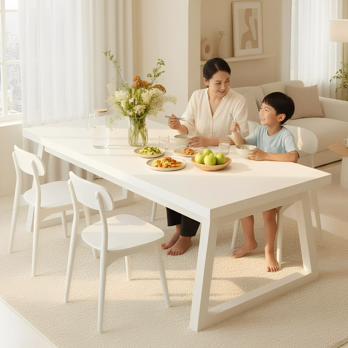 Elegant French-Style Rectangular Dining Table for Home and Commercial Use - White Minimalist Design for Living Room and Café, Perfect for Restaurants and Tea Shops