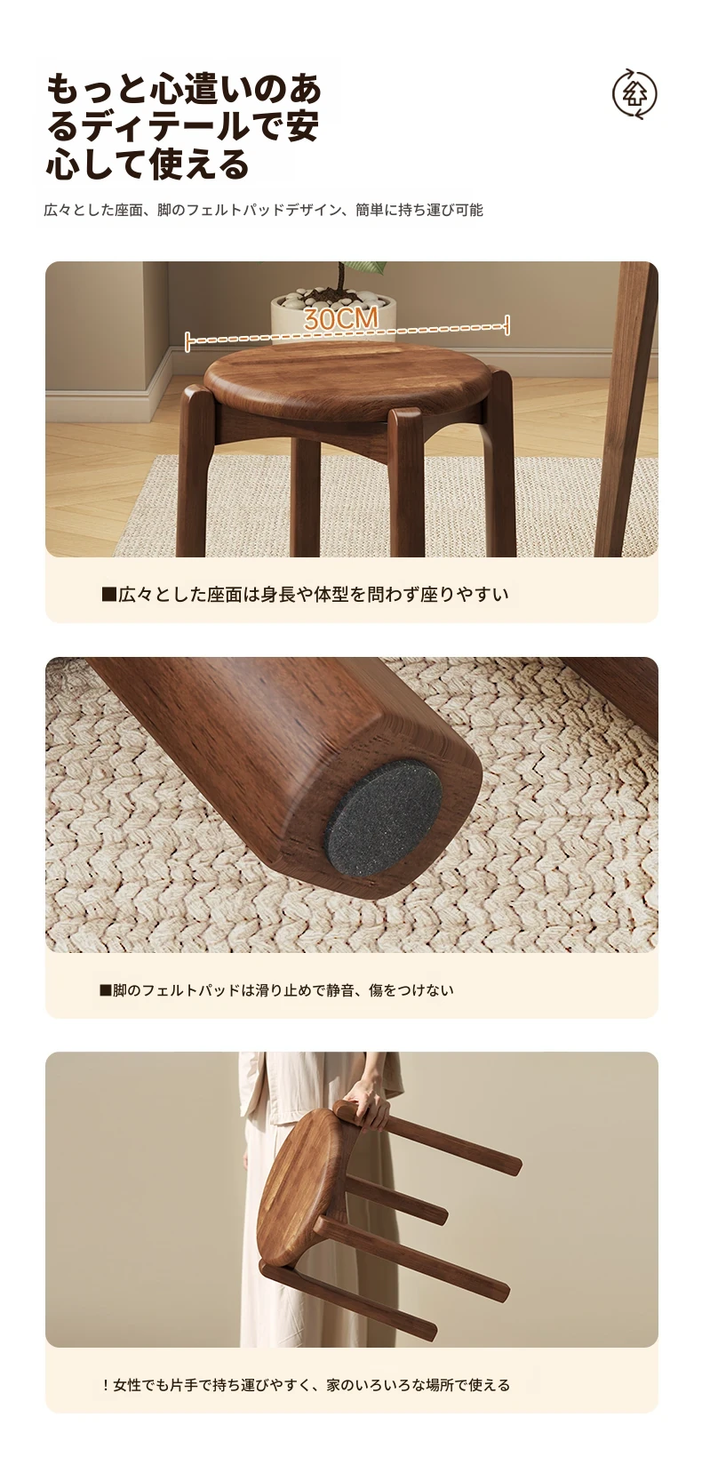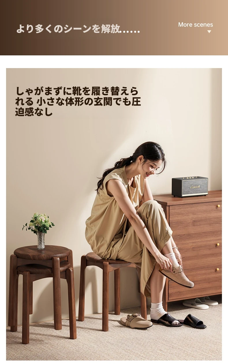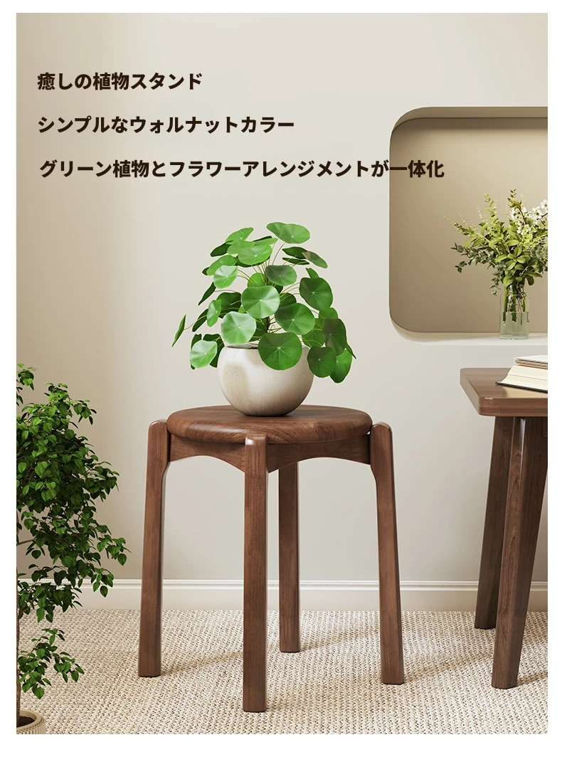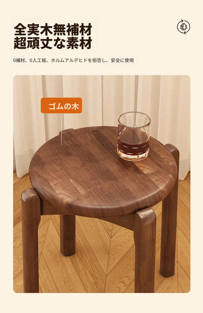 居宅必需品 - 丸椅 ウォールナット色【ラバーウッド - 破損補償】
