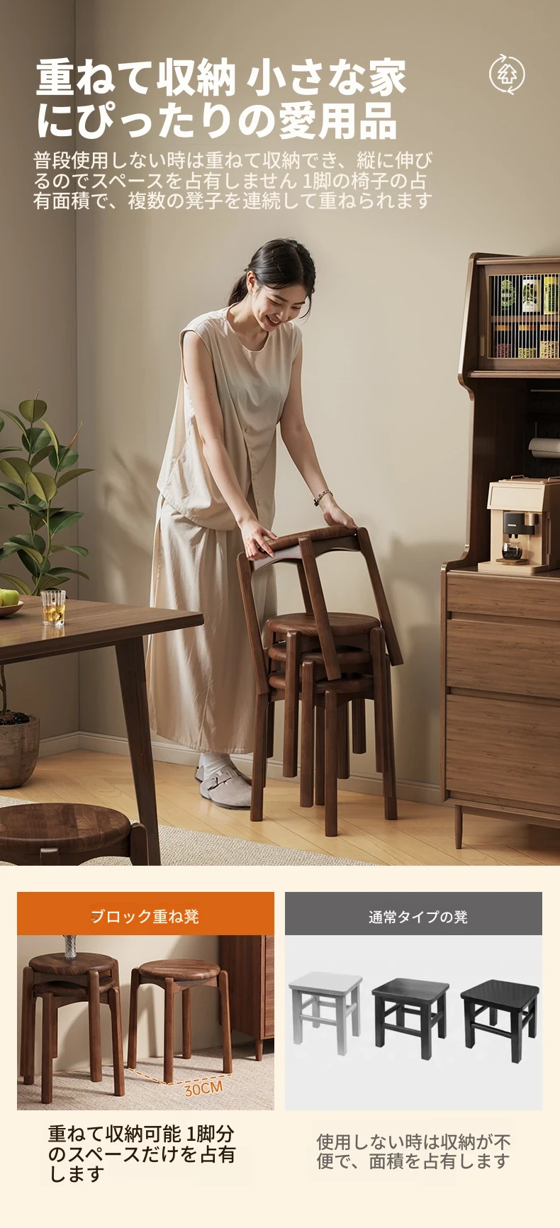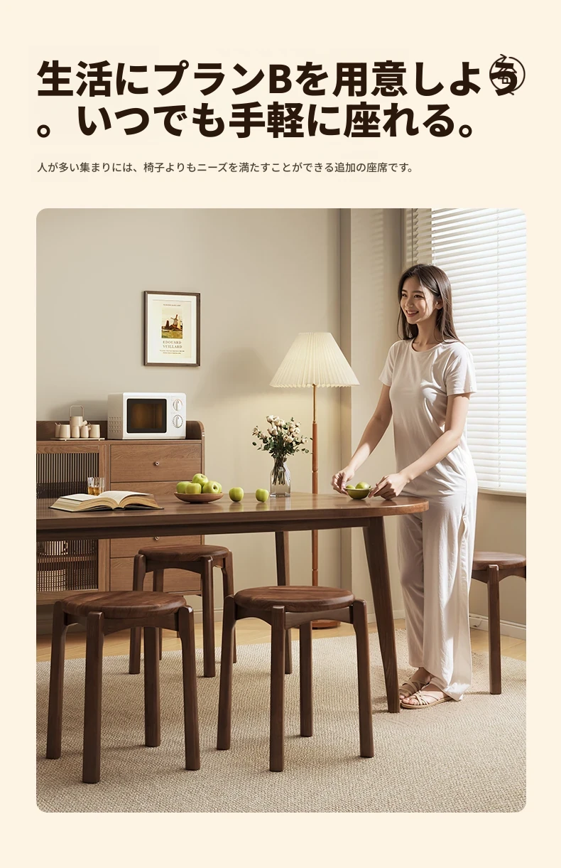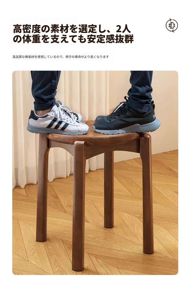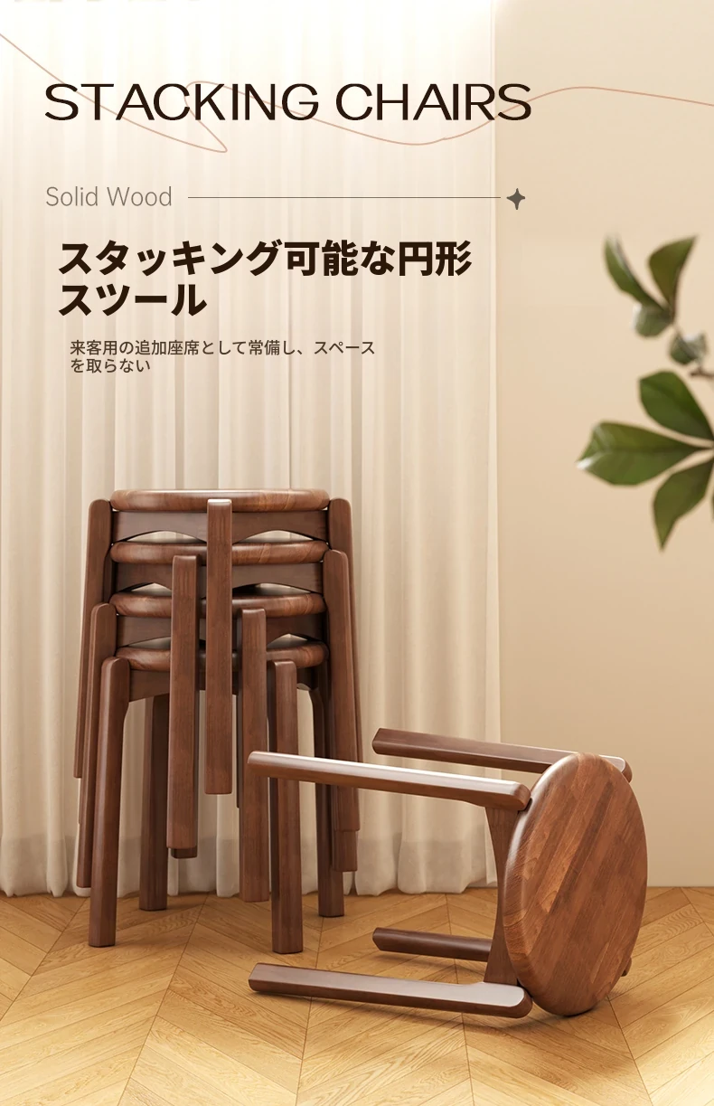 重厚な無垢材製スタッキングスツール - 家庭用ダイニング、ゲスト用として最適!商業利用にもぴったりな頑丈な板を使用した木製スクエアスツール。高品質でおしゃれなデザイン、空間を有効活用!