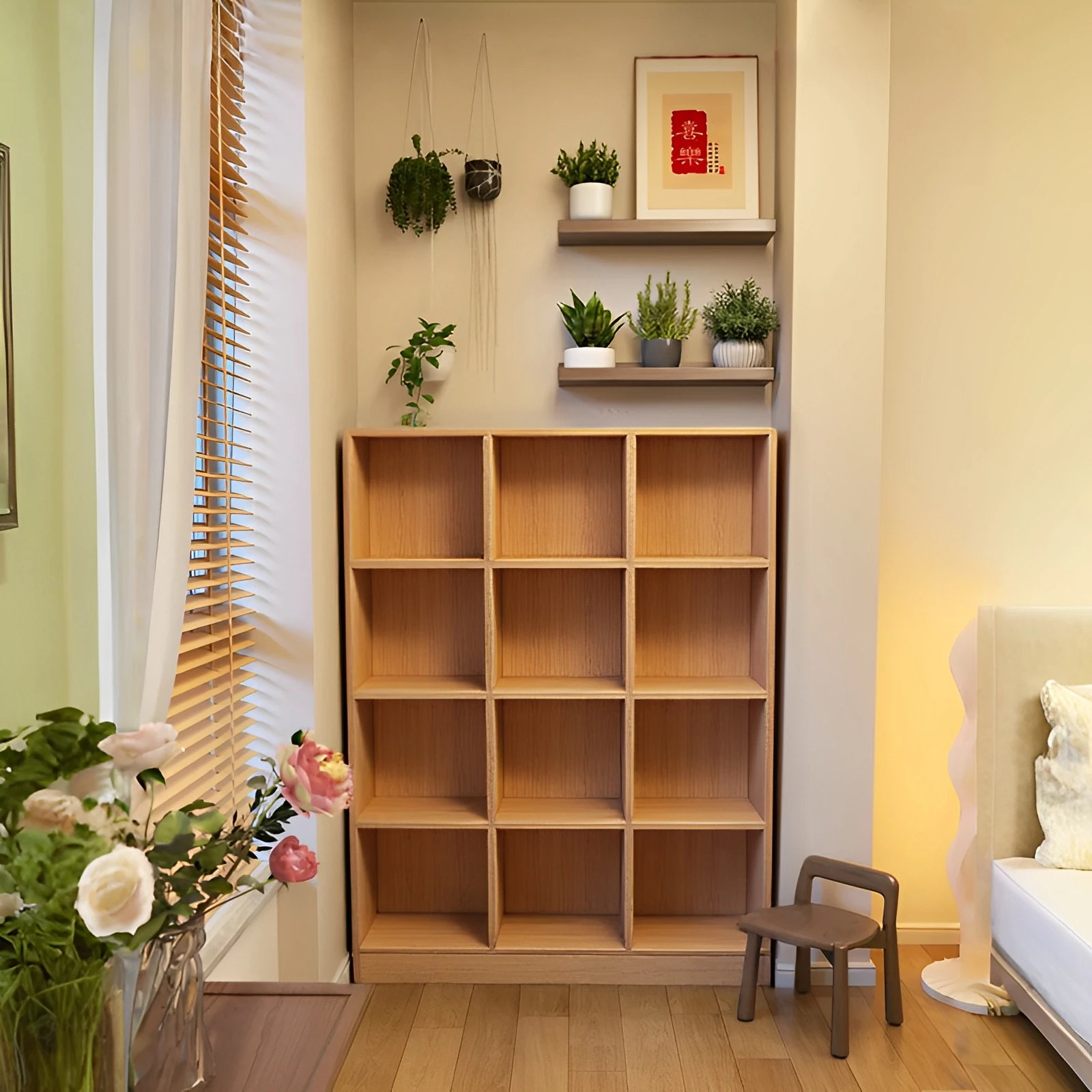Stylish Floor Bookshelf and Storage Rack - Wall-Mounted Low Cabinet for Home Use, Ideal for Kindergarten Backpack Storage, Versatile Cubby Storage Units, Perfect Combination Bookshelf for Organized Spaces
