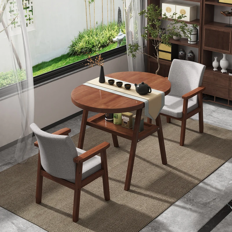 2025 New Solid Wood Balcony Tea Table Set - Artistic Chinese Style Tea Table and Chair Combo for Home Relaxation Area
