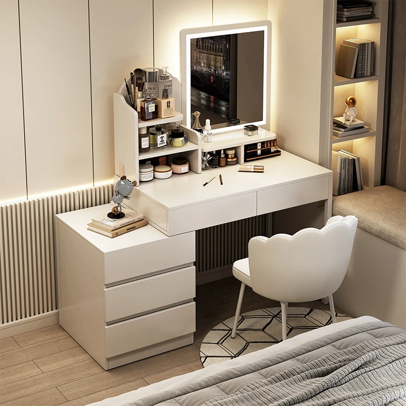 Modern Minimalist Makeup Vanity Mirror with Storage – 2025 New Luxury Nightstand Dressing Table Combo for Your Bedroom