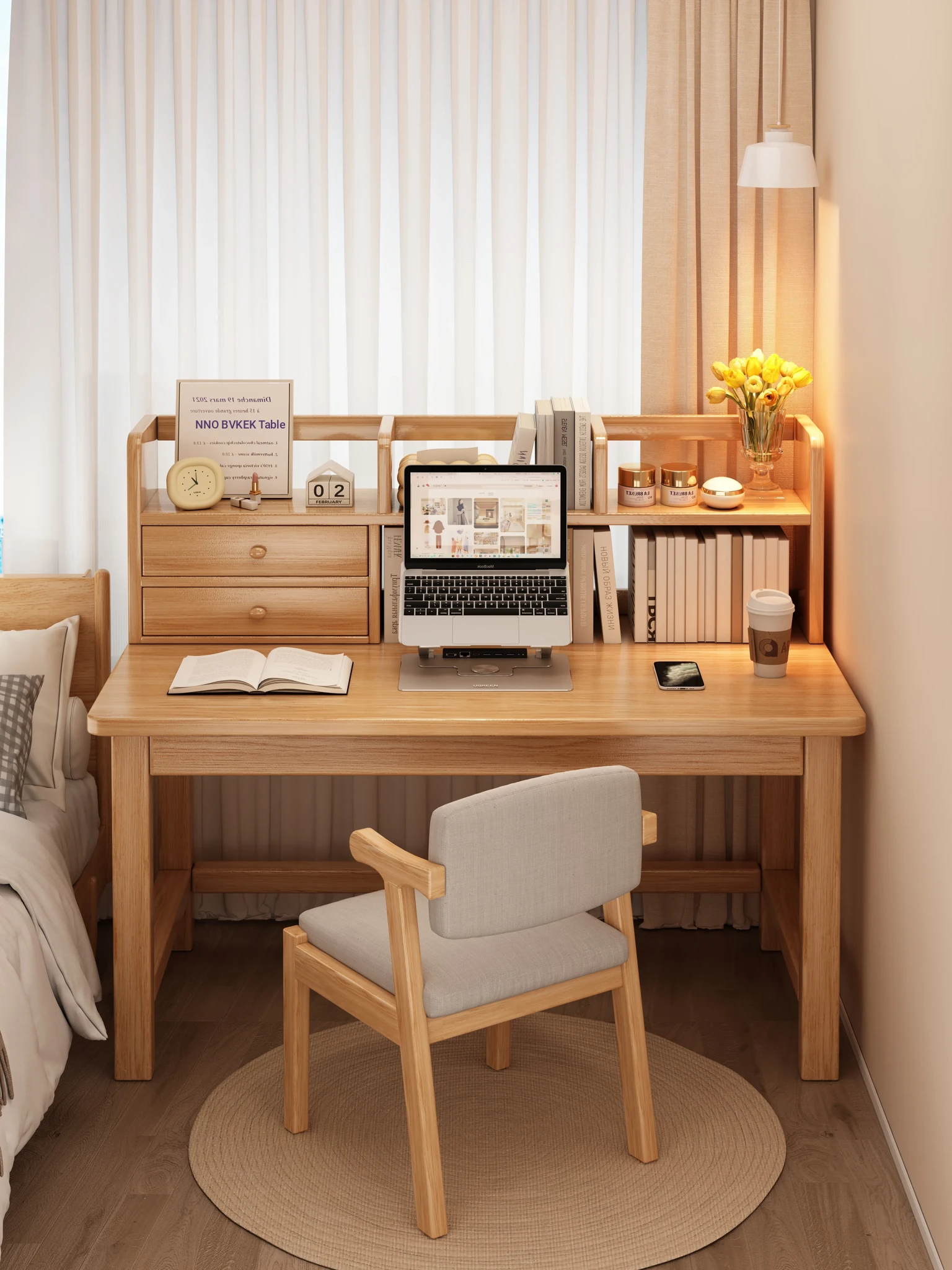 Modern Minimalist Corner Computer Desk and Vanity Dresser Combo - Stylish Bedroom Furniture with Elegant Storage Solutions for Makeup and Study