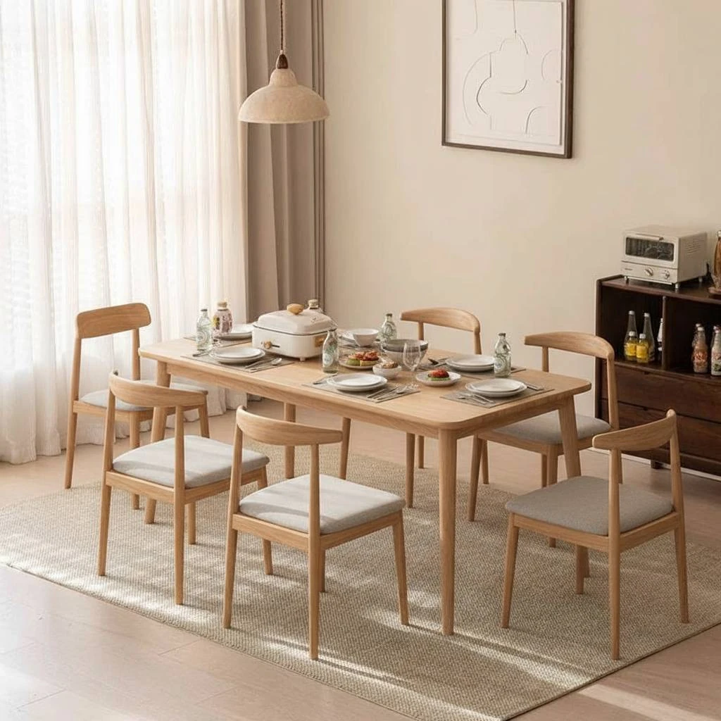 2025 New Rectangular Solid Wood Dining Table Set - Modern Minimalist Living Room Furniture for Home Use, Perfect for Family Gatherings and Stylish Dining Experience.