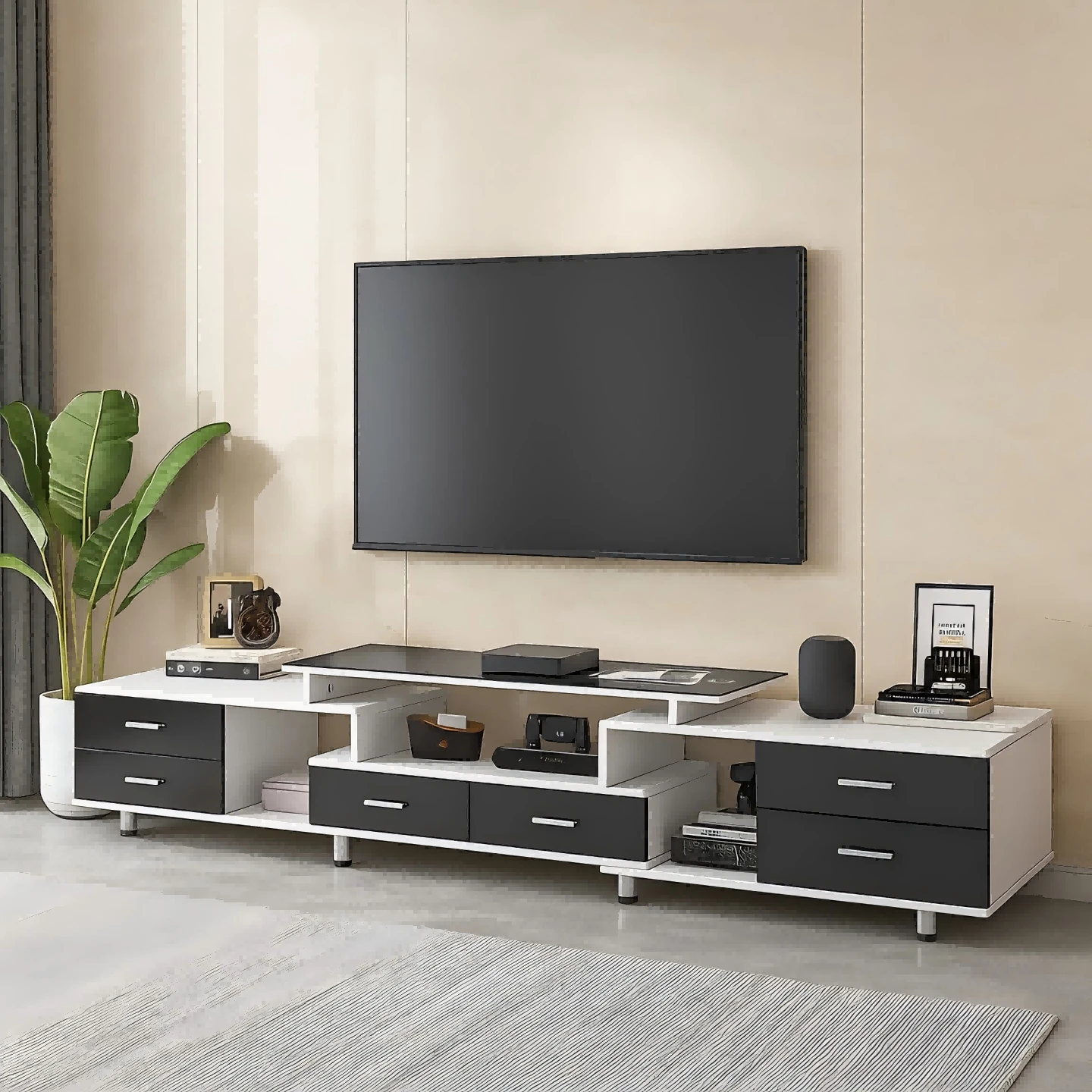 リビングルームに最適!2025年新作のモダンでシンプルなテレビキャビネットと伸縮式コーヒーテーブルのコンビネーション。小型住宅にもピッタリで、空間を有効活用!
