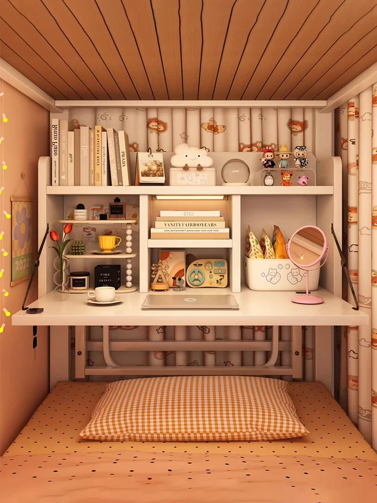 折りたたみ式ベッドサイドテーブル - 大学生向けの宿舎用!上段・下段対応、空間を有効活用し、学習や作業を快適にサポートするデザイン。勉強も遊びも効率的に!