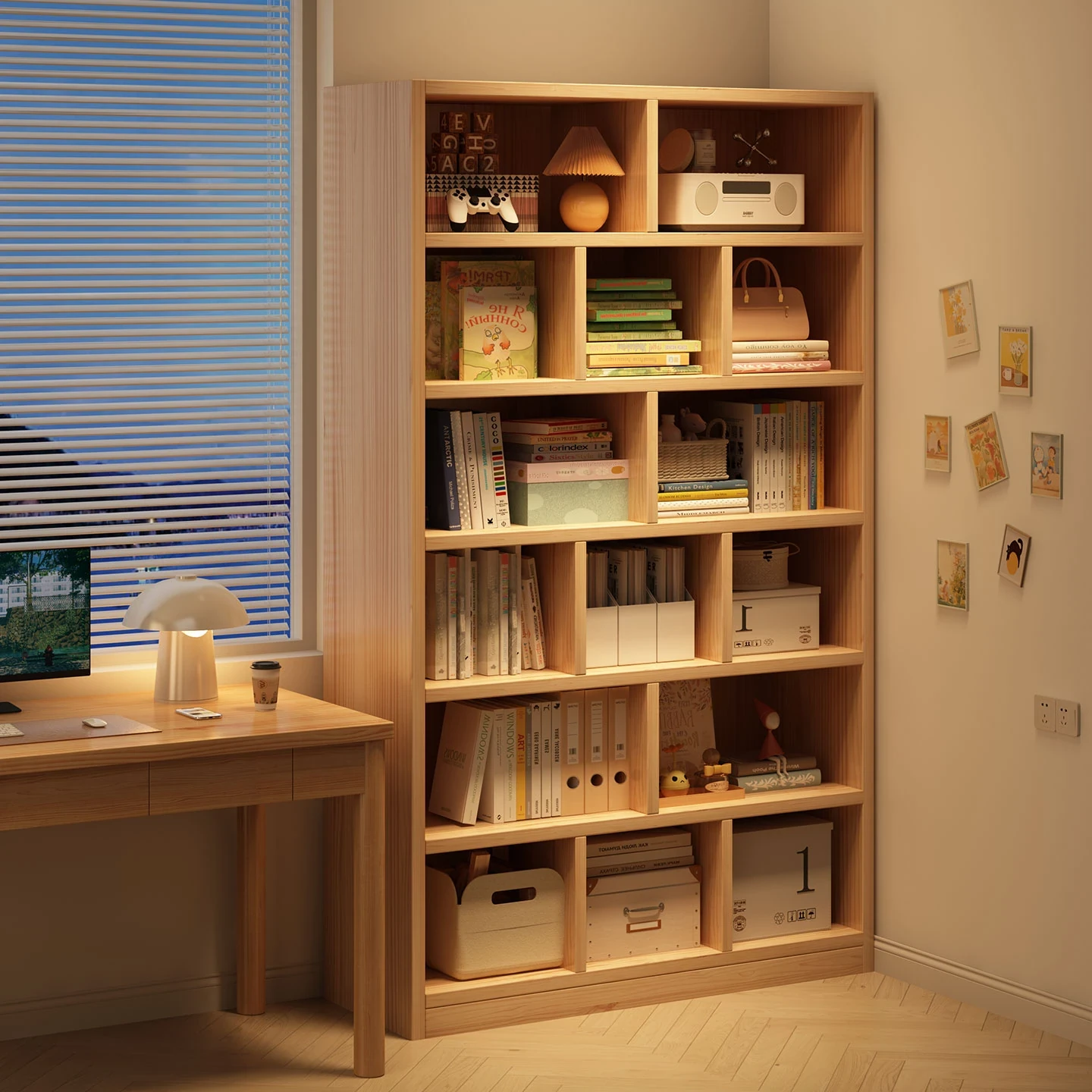スタイリッシュな天然木製の書棚 - リビングや書斎に最適な多段式収納ラック!壁にぴったりフィットし、書籍や小物を美しくディスプレイ。おしゃれで実用的な収納ソリューションを手に入れよう!