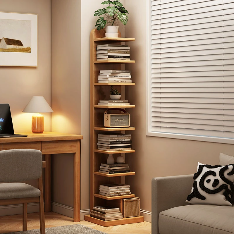 簡易書棚 フロア置き物ラック 書 desk そばのコーナー収納キャビネット 一体型 壁付け 多層書棚 スタンドキャビネット おしゃれで便利な収納スペースを提供!
