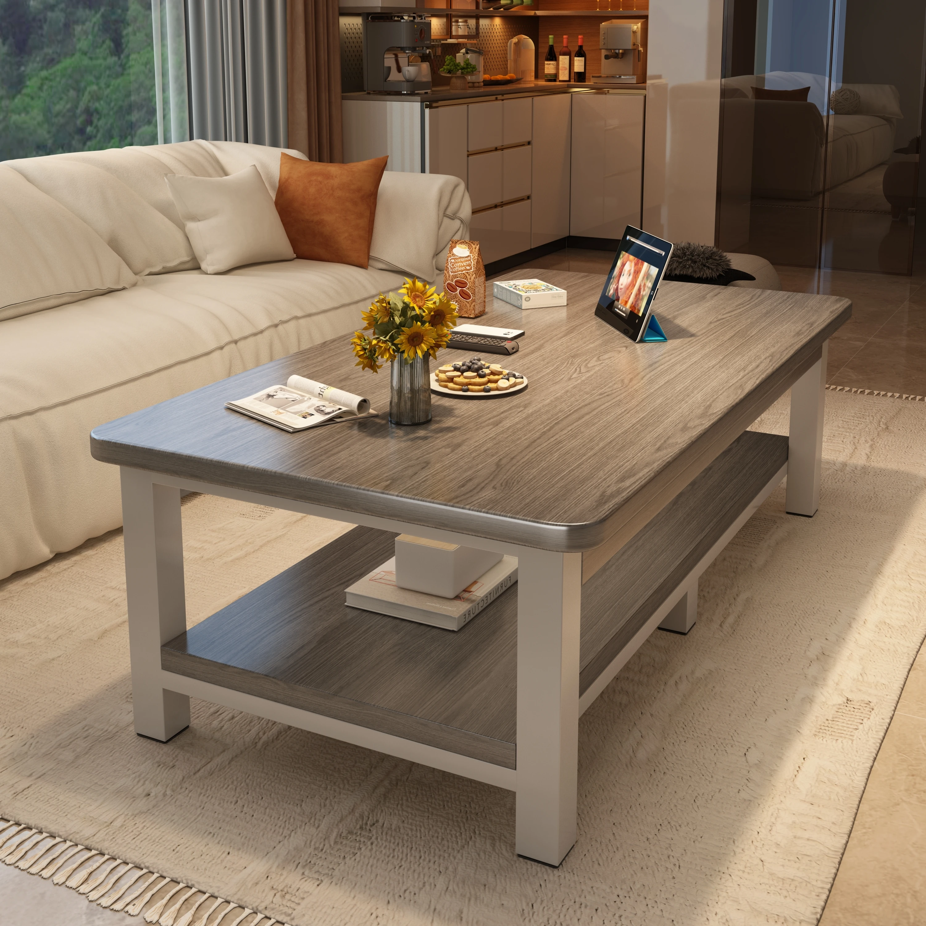 2025年新作!シンプルでモダンなデザインのリビング用コーヒーテーブル。小型住宅に最適な軽やかな高級感を演出し、ソファにぴったりフィット!美しいインテリアを実現するための理想的なアイテムです。