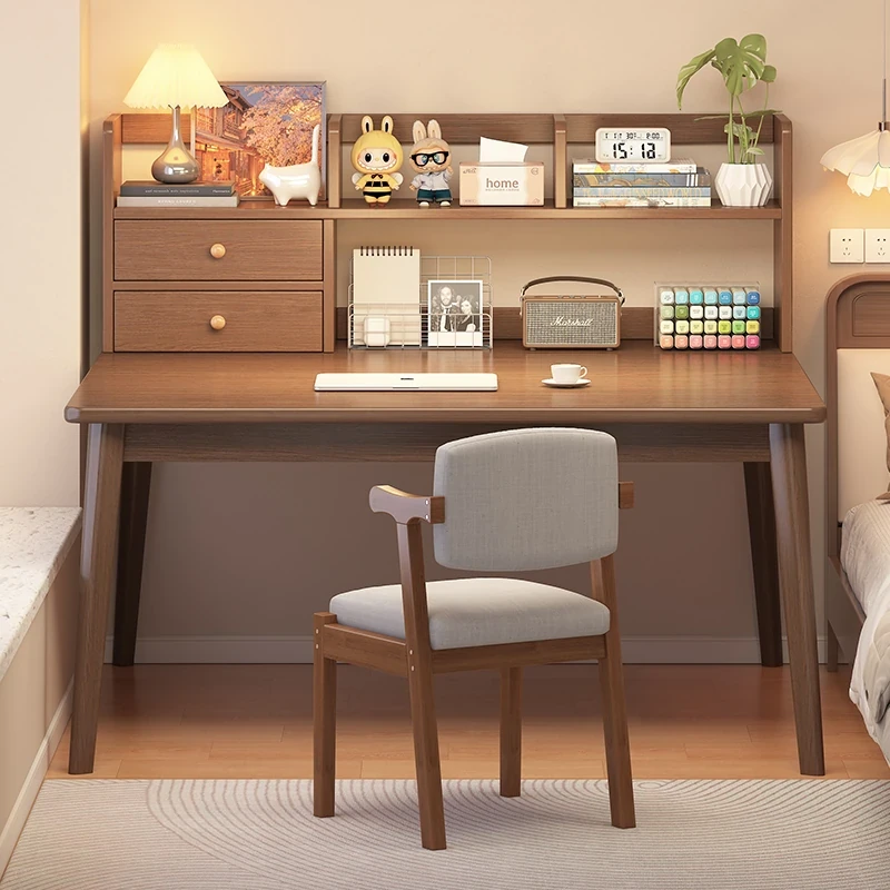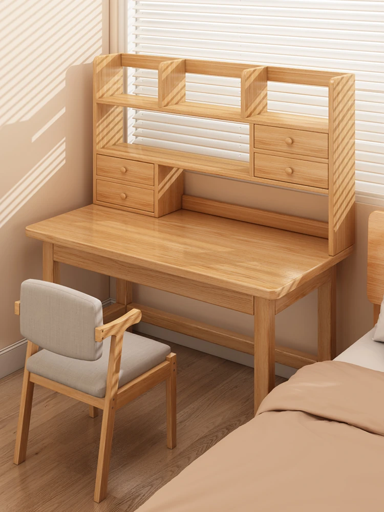 実木製の書斎デスク|家庭用・学生向け学習デスク|シンプルな書架一体型|寝室やオフィスに最適なコンピューターデスク|勉強や仕事が捗る快適空間を実現!
