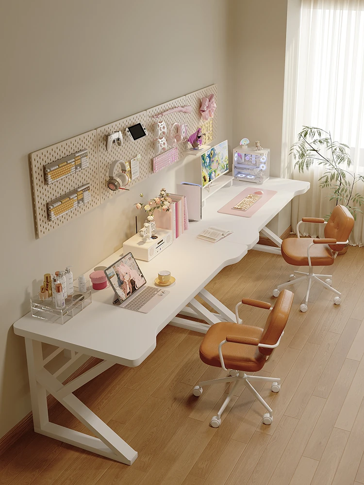 二人用パソコンデスク|女性向け長方形デザイン|ゲーミングデスクにも最適|自宅学習・書き物・オフィス作業に最適なスタイリッシュなデスク