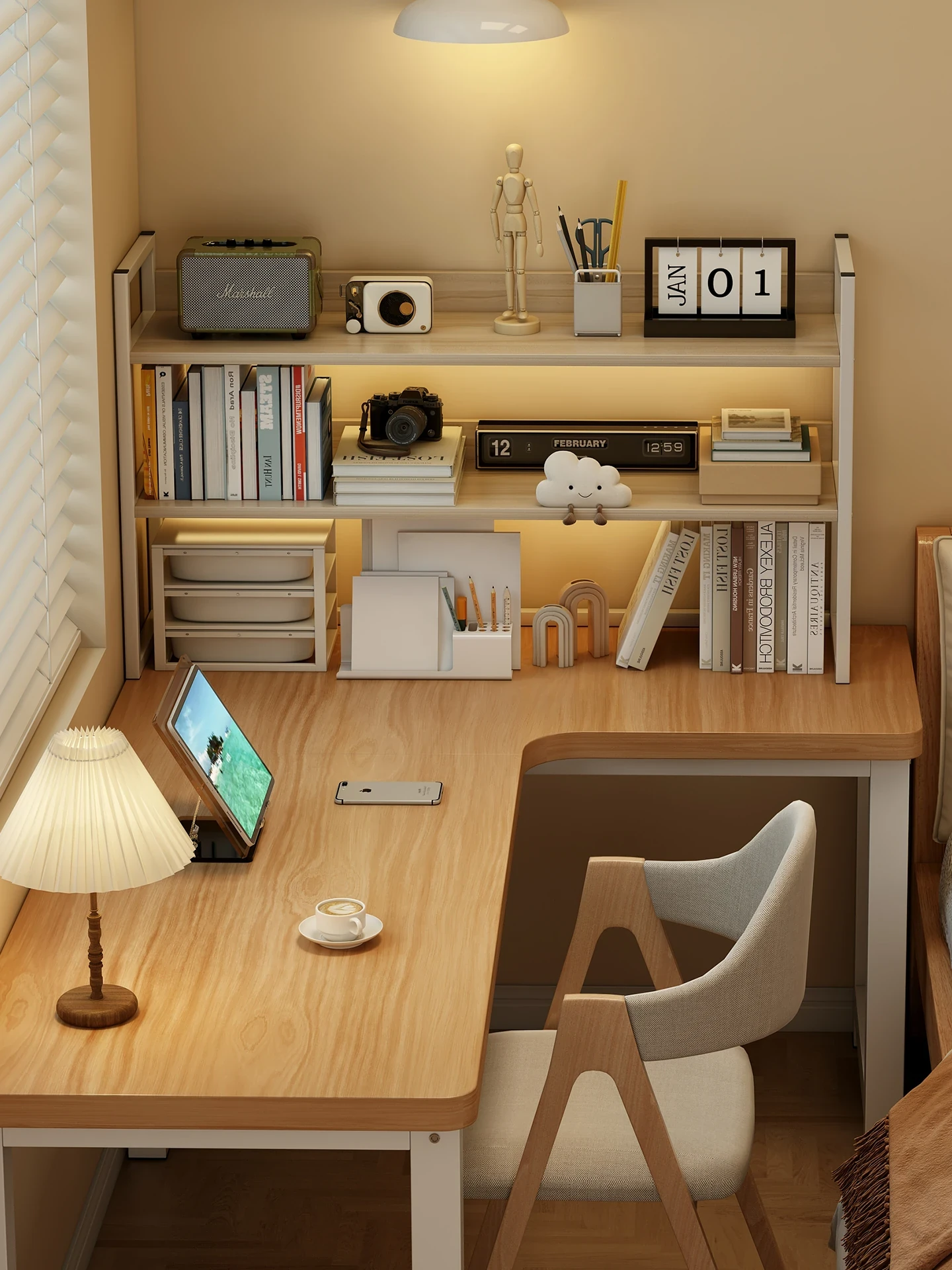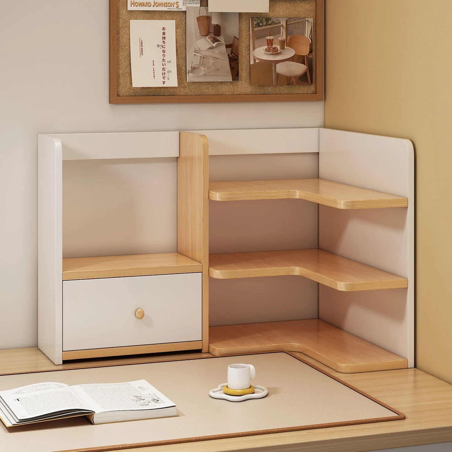 デスクコーナー収納ラック 学生寮に最適!半囲いデザインでデスク周りをスッキリ整理。オフィス用品や書籍もすっきり収納できるアイデア商品!