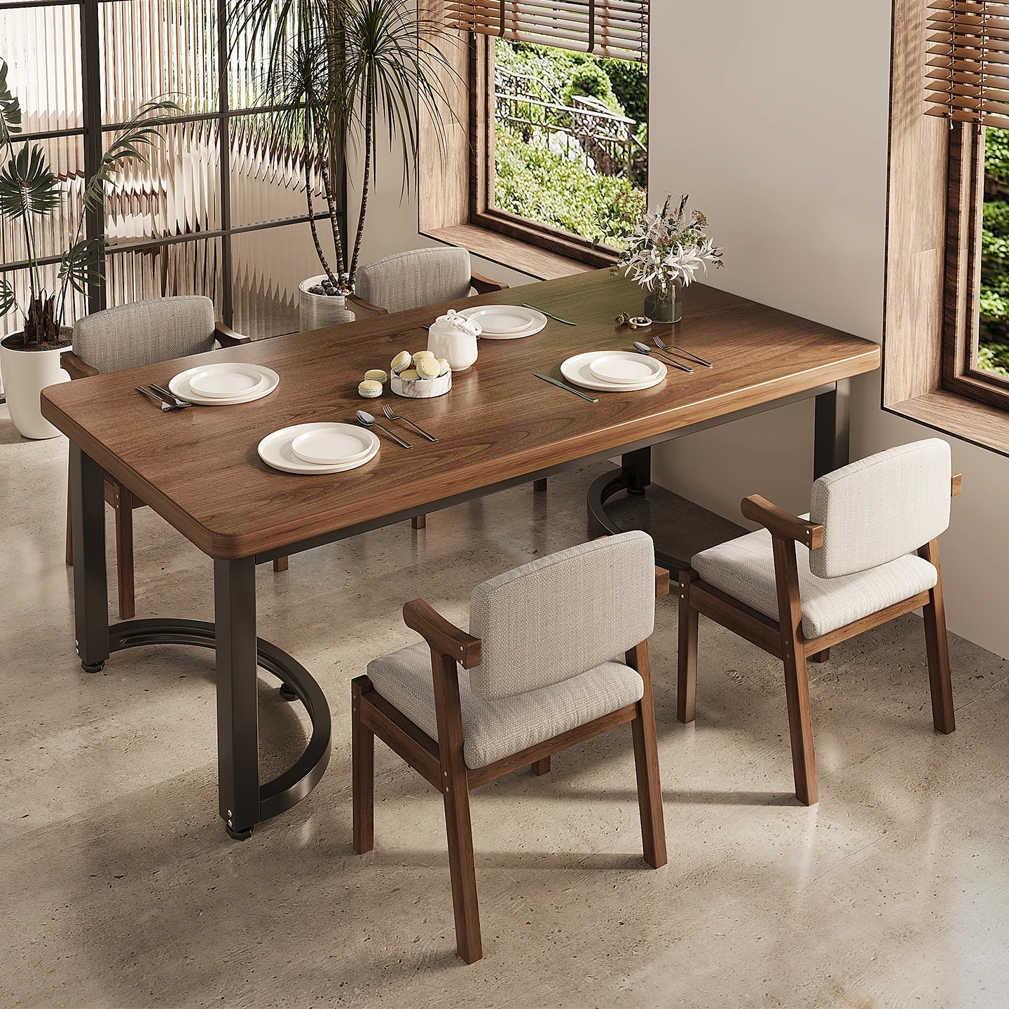 2025年新作!中古風デザインの大型長方形テーブル - 小型住宅や飲食店に最適!おしゃれで実用的なレンタル用ダイニングテーブル。快適な食事空間を演出します!