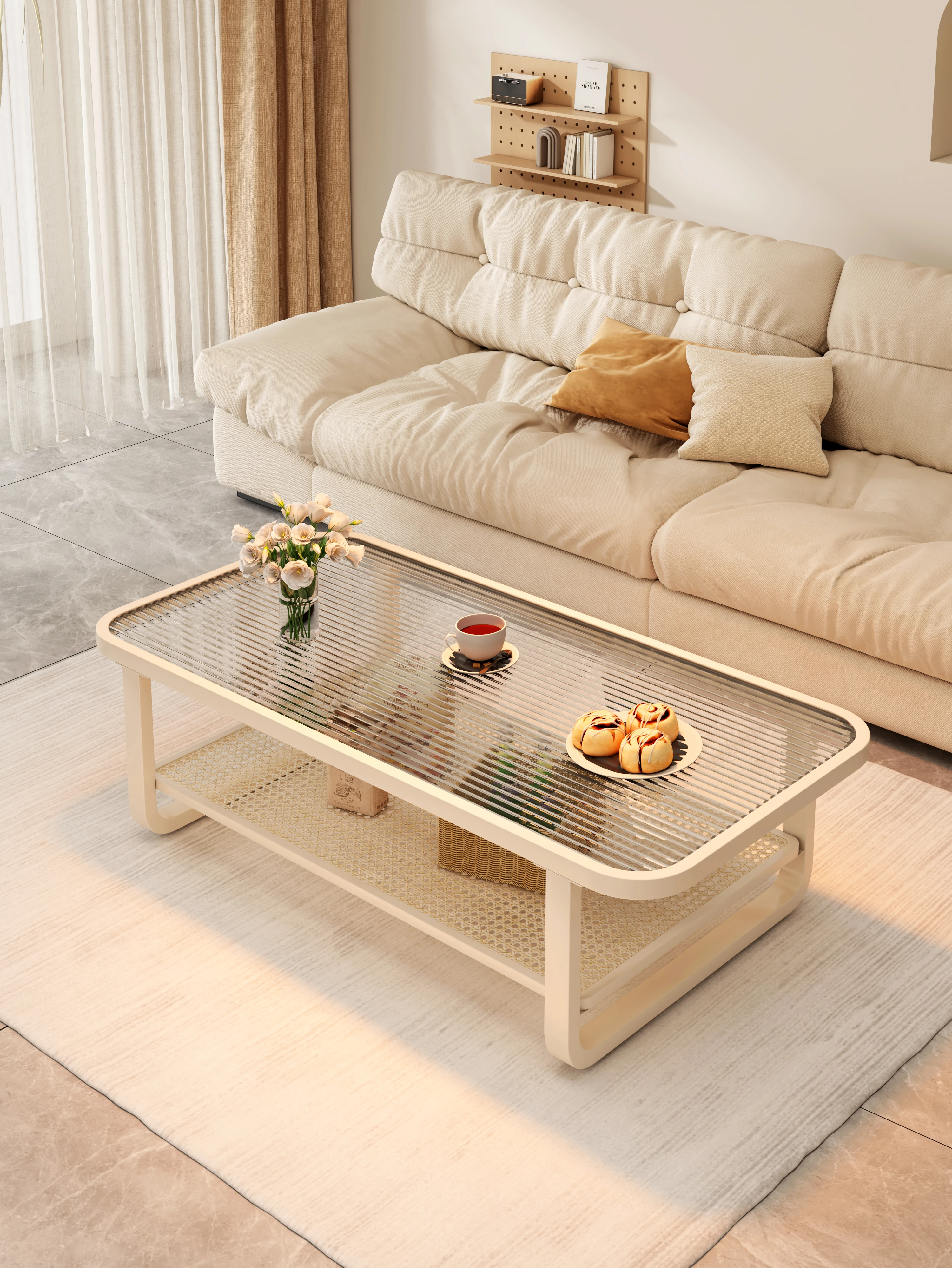 2025年新作!高級感あふれるコーヒーテーブル - スチール強化ガラスとクリーミーなデザインで、リビングルームにぴったりの小型サイズ。おしゃれで実用的な一品で、あなたの空間をより素敵に演出します!