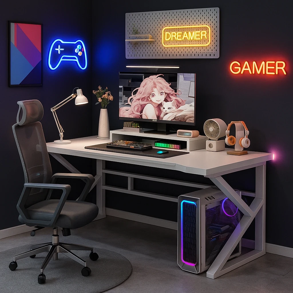 シンプルでスタイリッシュな家庭用デスク!現代的なゲーミングデスク、頑丈なスチールフレームと広々とした天板で、快適なゲーム体験を提供します。エレガントなデザインで、どんな部屋にもぴったり!