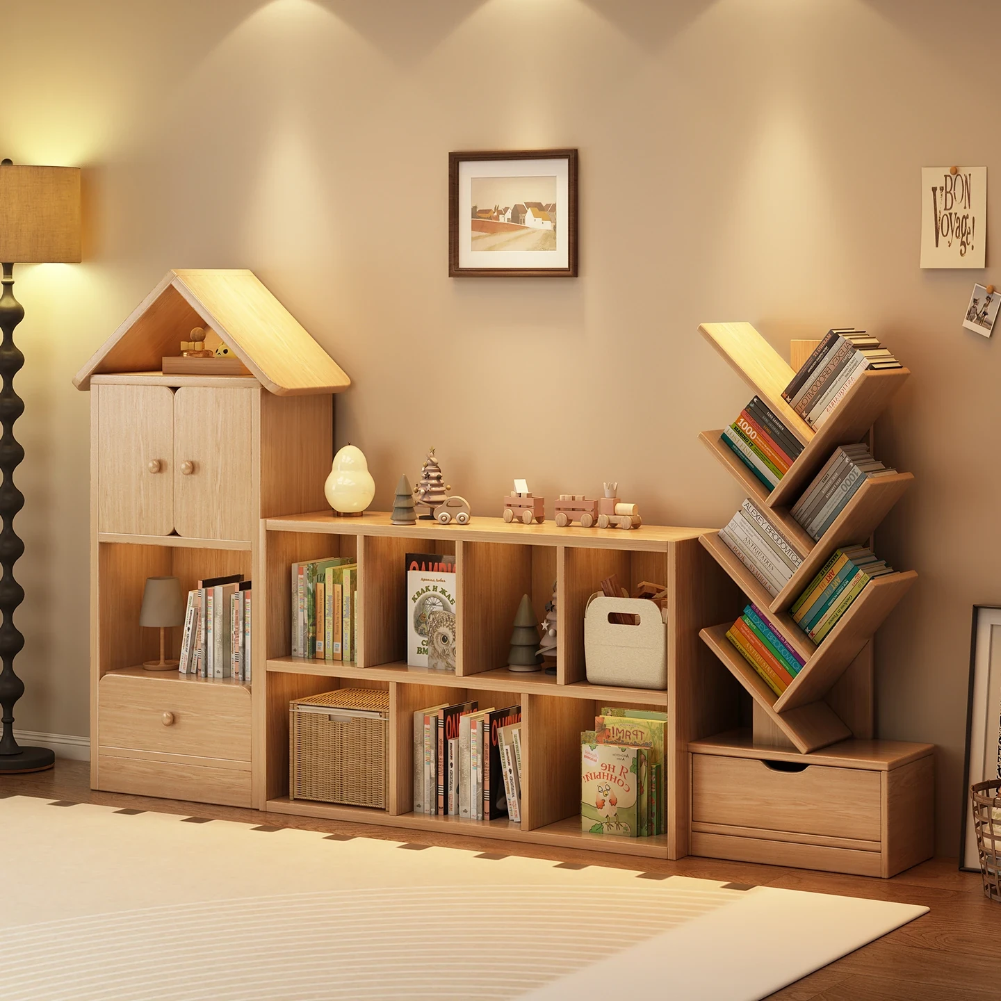 子供部屋にぴったり!日本風の落地式収納キャビネット - おしゃれで機能的な書棚。書籍やおもちゃをすっきり整理、家族みんなが使える便利な収納スペース!