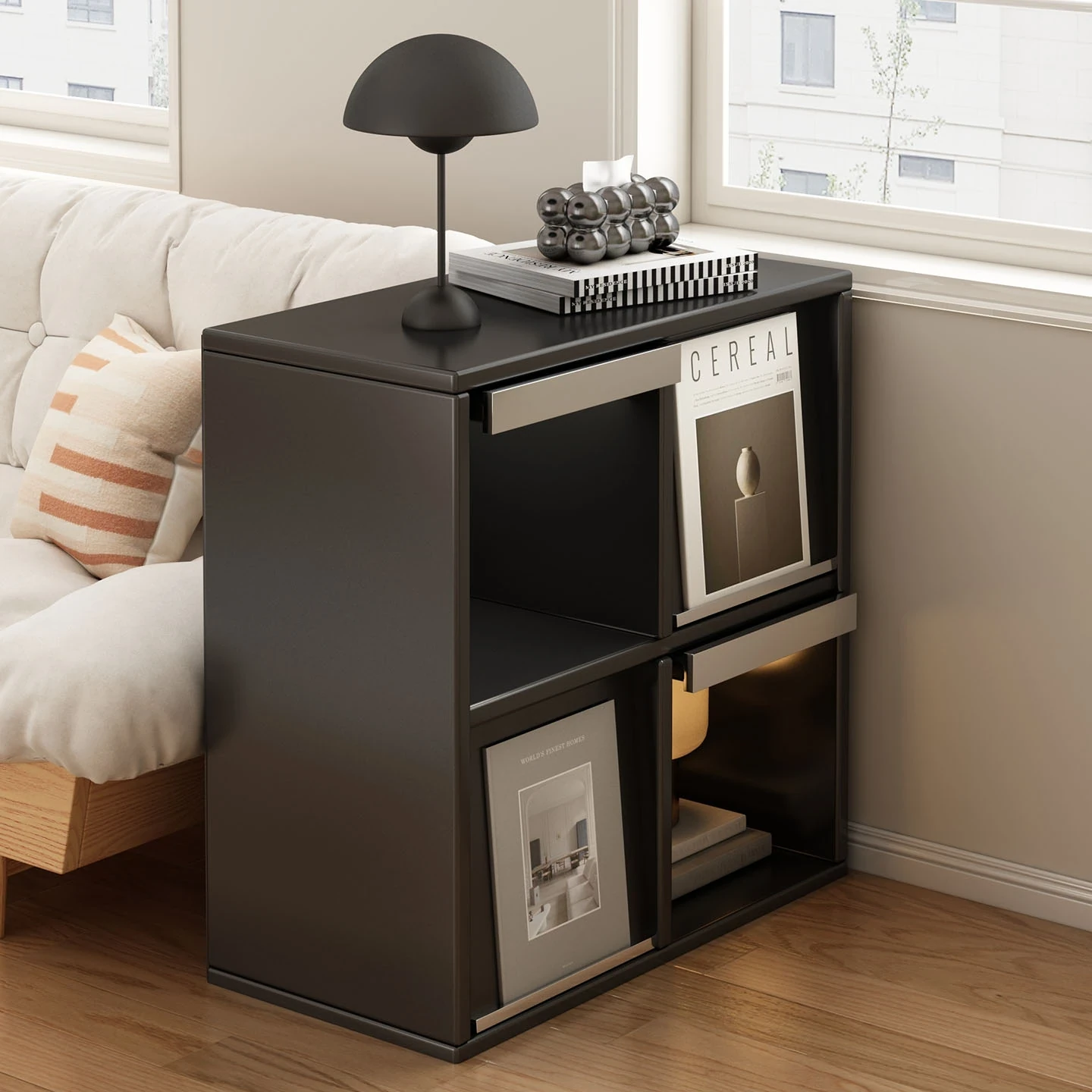 省スペースの隠れた本棚!リビングやソファ脇に最適な実木製収納ラック。おしゃれで機能的な収納ソリューションで、あなたの空間を美しく整理整頓!