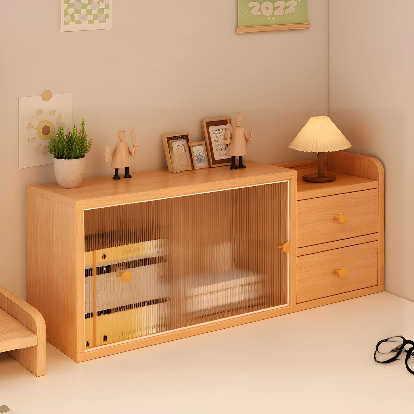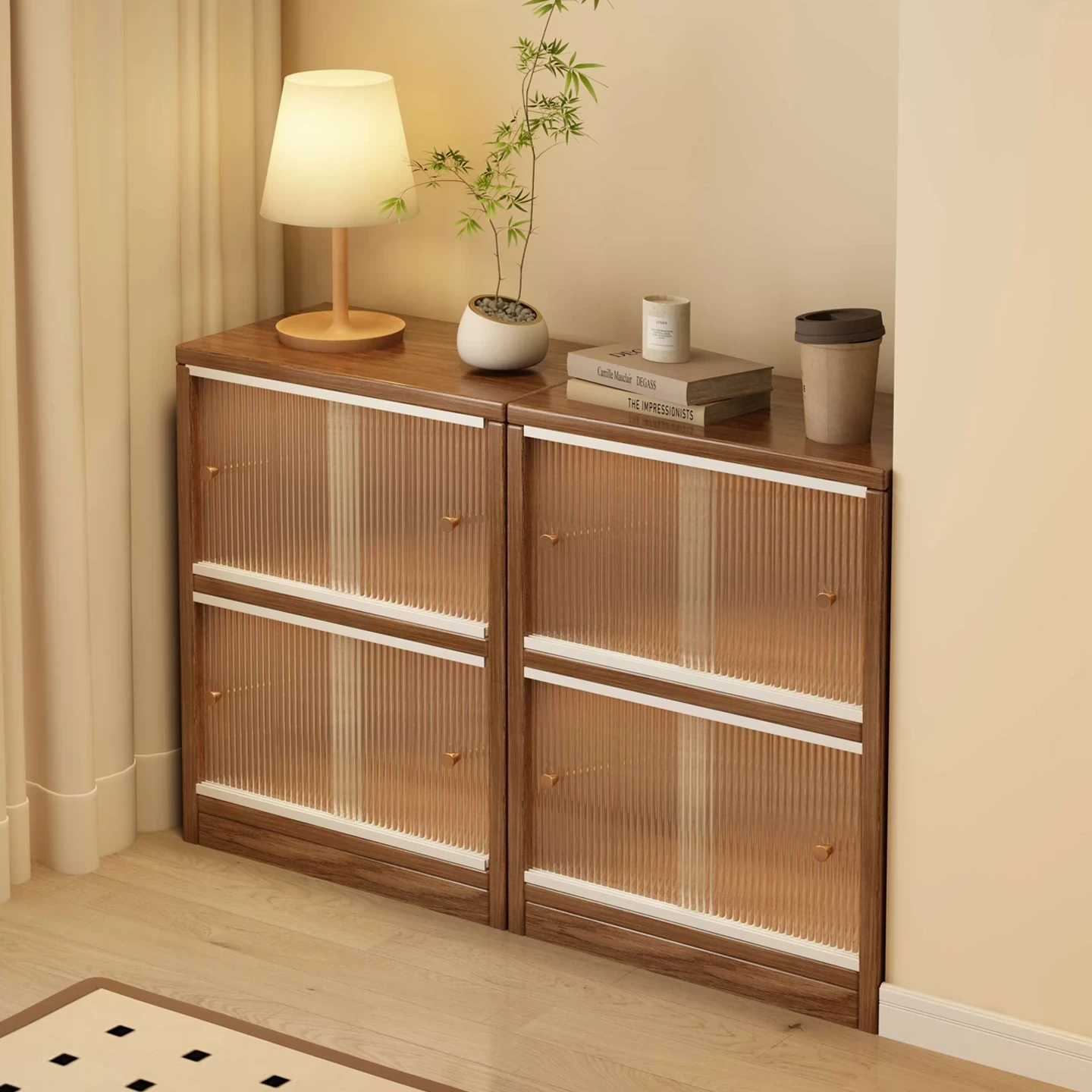 Stylish Sliding Door Bookcase - Multifunctional Low Display Cabinet for Home Storage, Dust-Proof Bookshelf Perfect for Living Room Wall-Mounted Storage Solution