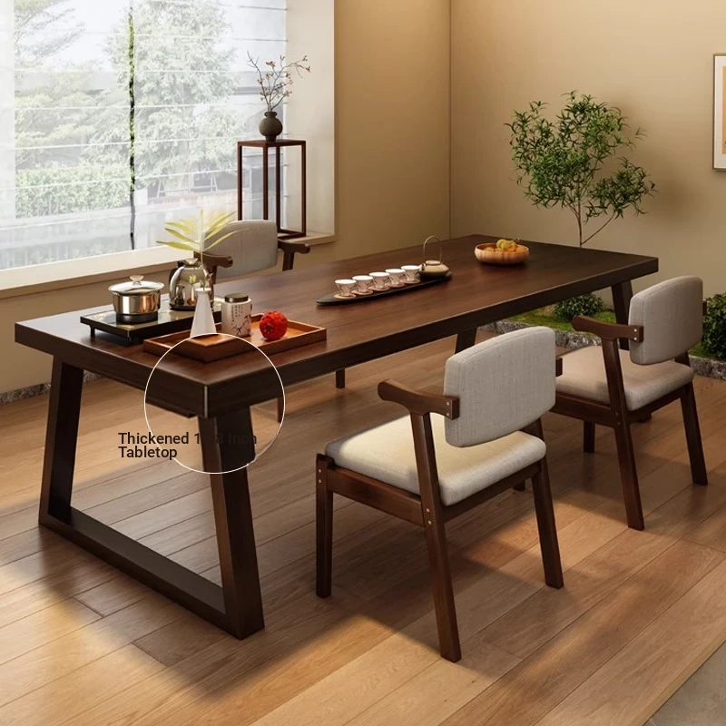 Elegant New Chinese Zen Style Black Walnut Large Coffee Table Set for Living Room, Home, or Office - Simple Tea Table with Chairs Combo