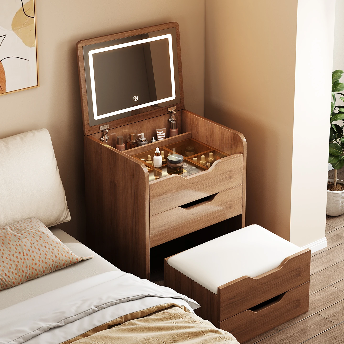 2025 New Makeup Vanity with Integrated Mirror - Stylish Corner Dressing Table for Small Bedrooms and Master Suites