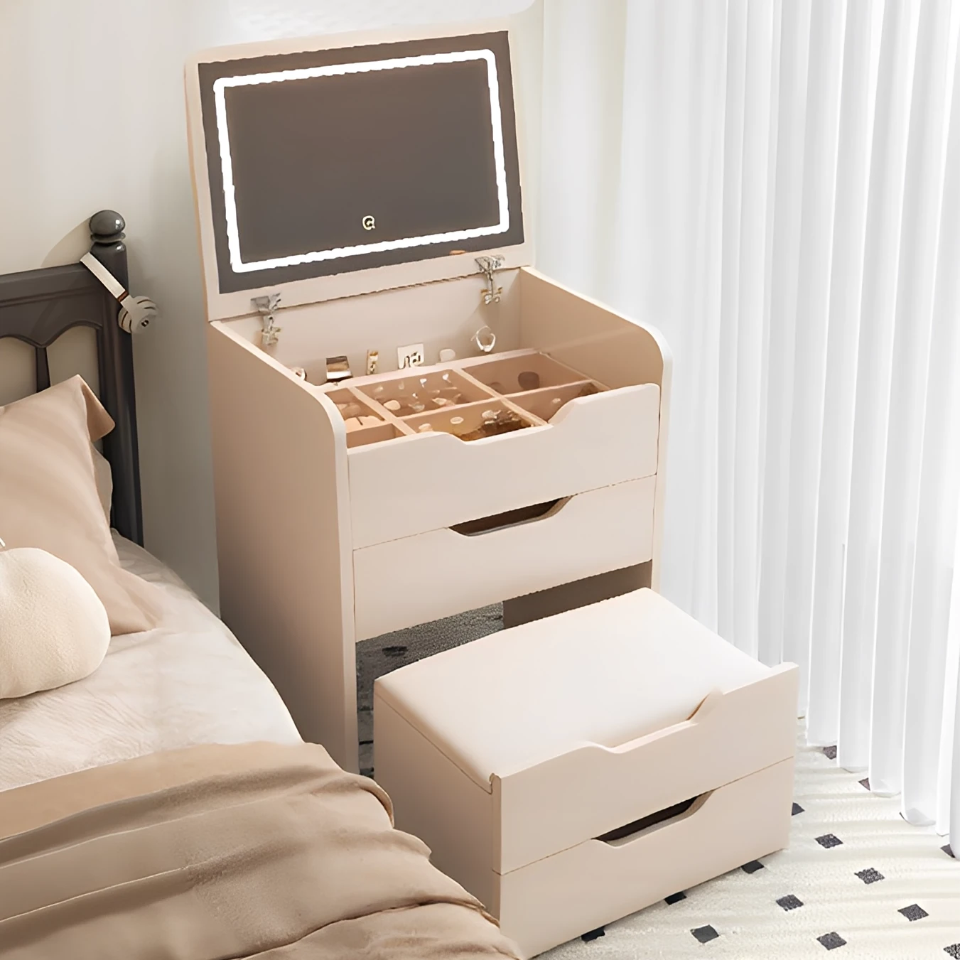 2025 New Modern Minimalist Makeup Vanity - Compact Bedroom Dressing Table with Mirror, Nightstand, and Storage Desk Combo