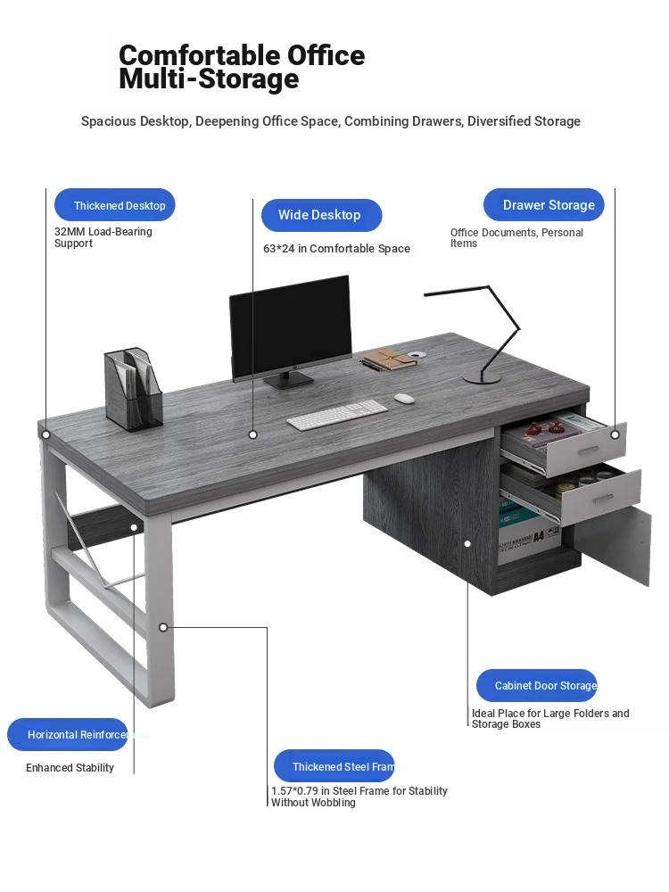Modern Minimalist Office Desk Set - Stylish Executive Desk and Chair Combo for Efficient Workstations, Perfect for Employee Use and Computer Work.